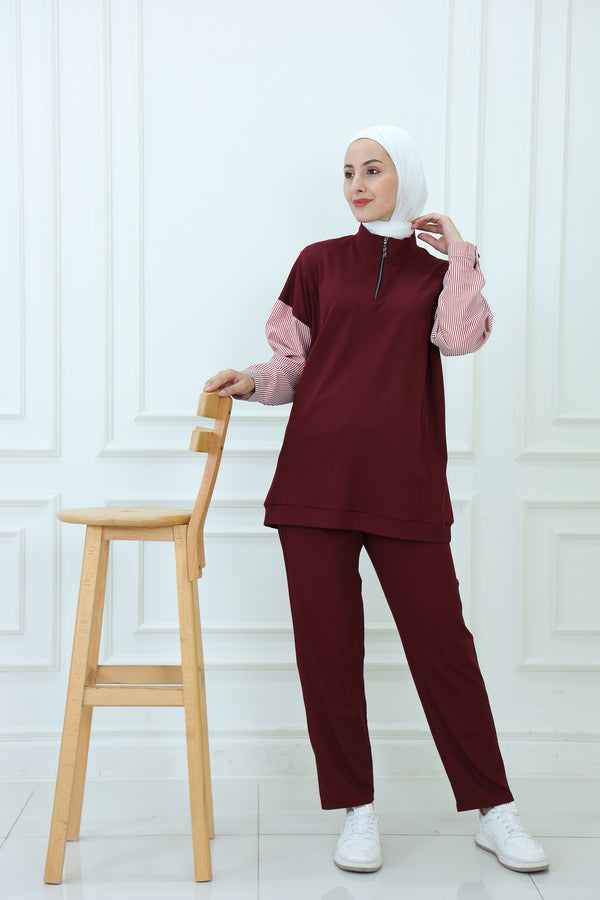 Product Description Enjoy sporty comfort and modest style with this two-piece tracksuit designed for relaxed movement and everyday wear. The top comes in a loose, longline cut with side slits,...