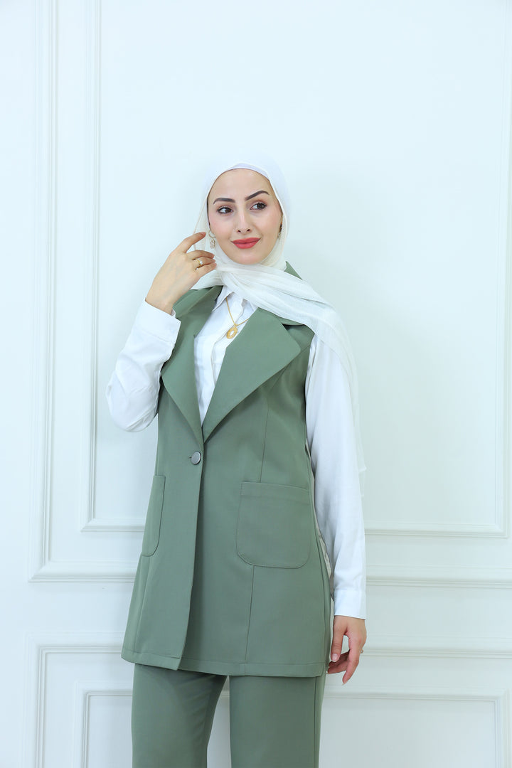 قياسات الموديل: 38، الطول: 175 سم، الخصر: 71 سم، الصدر: 87 سم، الكتف: 40 سم