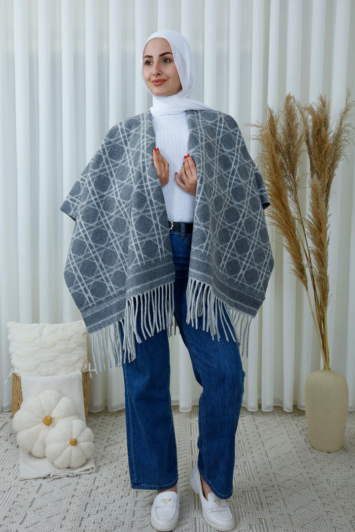 Made from warm, soft fabric, it drapes comfortably over the shoulders and layers effortlessly over knitwear, turtlenecks, and winter coats.