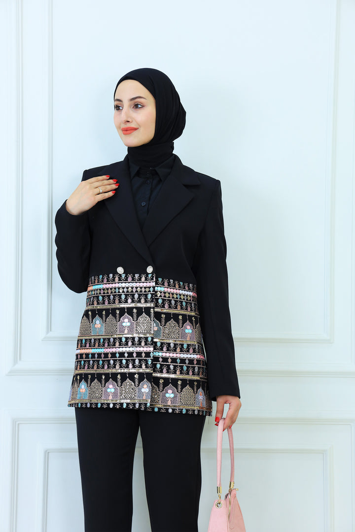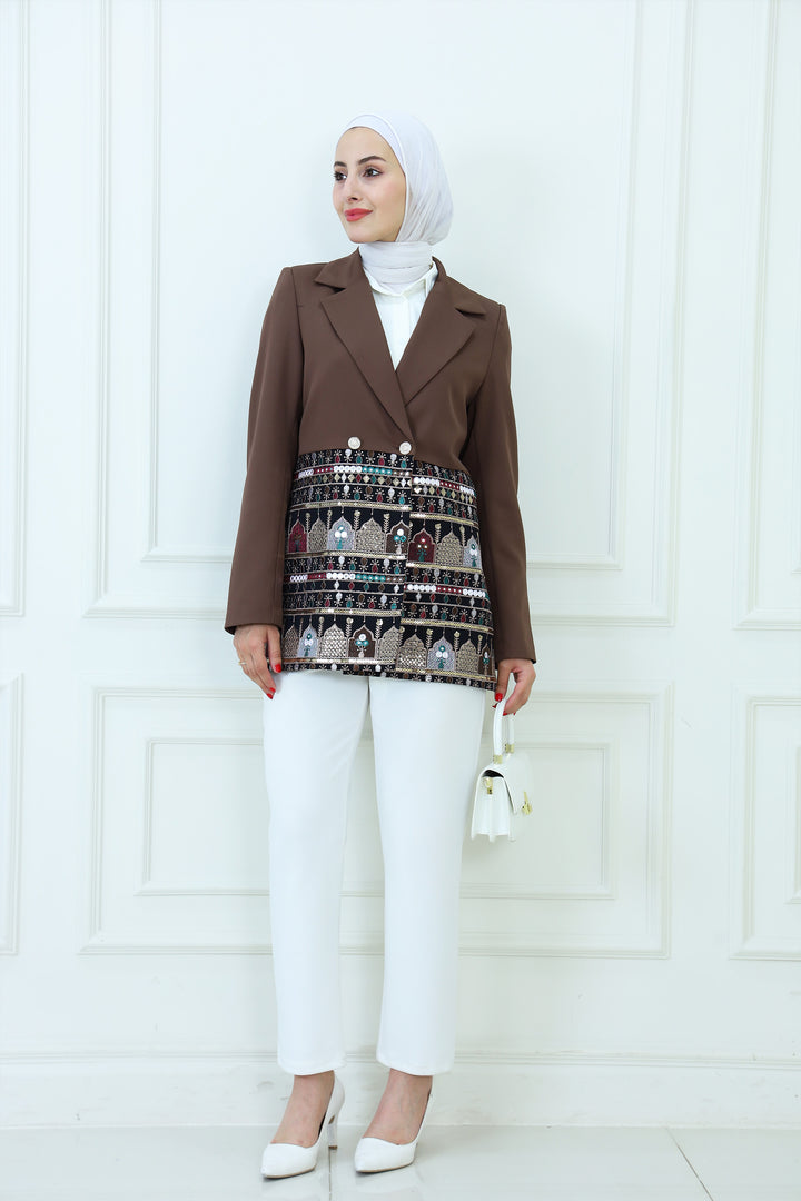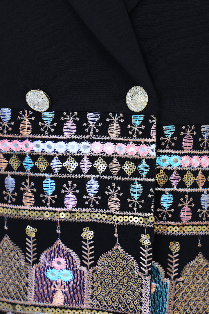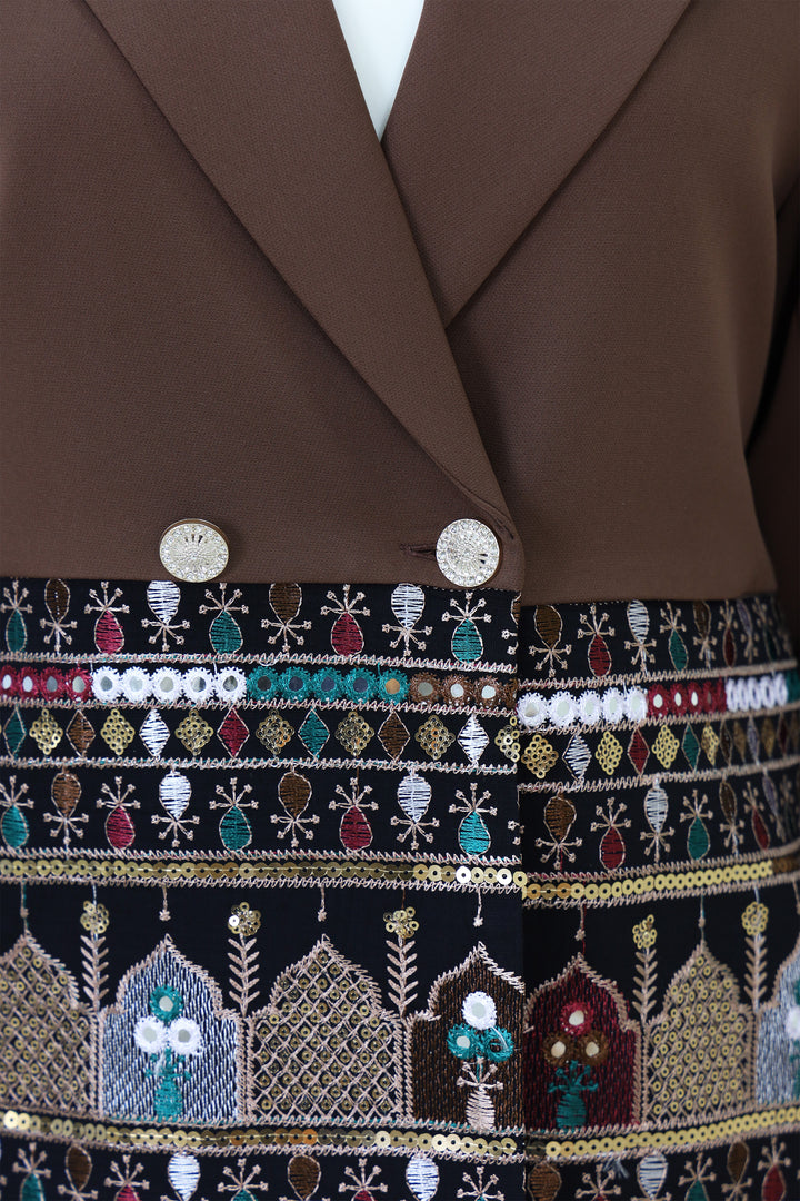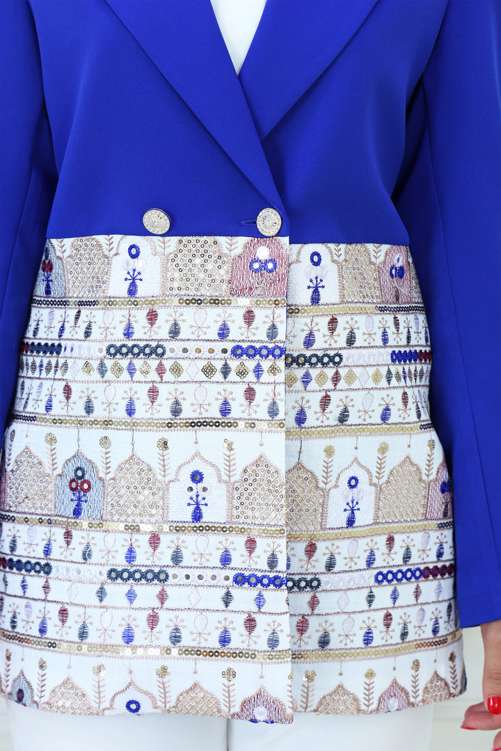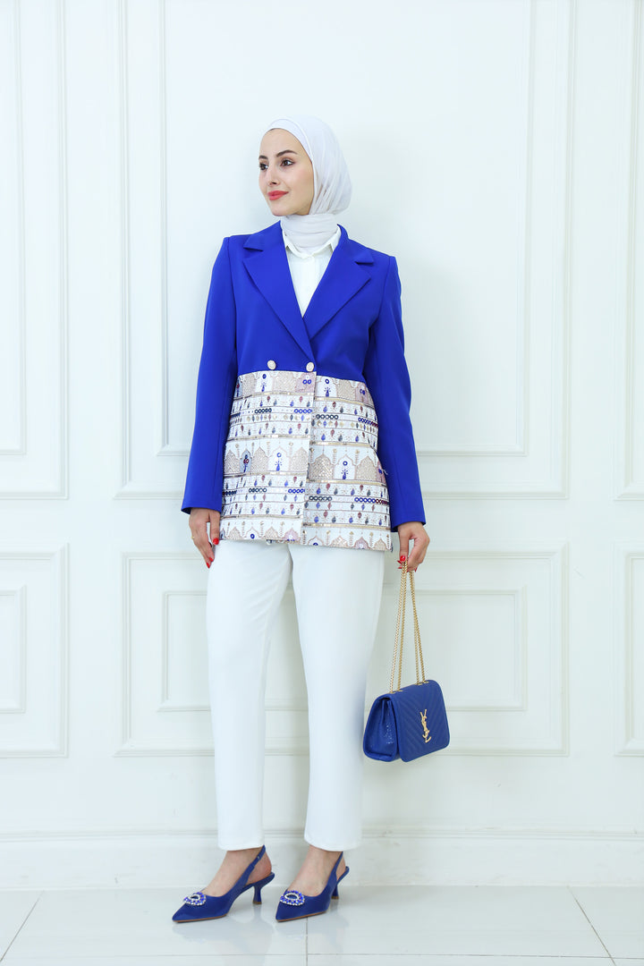 التفاصيل: مصمم لإبهار، هذا البليزر الأنيق يعرض تطريزًا أماميًا يترك انطباعًا جريئًا ولكنه أنيق. مصنوع من قماش رسمي فاخر مع حزام خصر متناسق، إنه القطعة المثالية لك لتبرز في الاجتماعات، العشاء، أو الملابس اليومية الراقية.