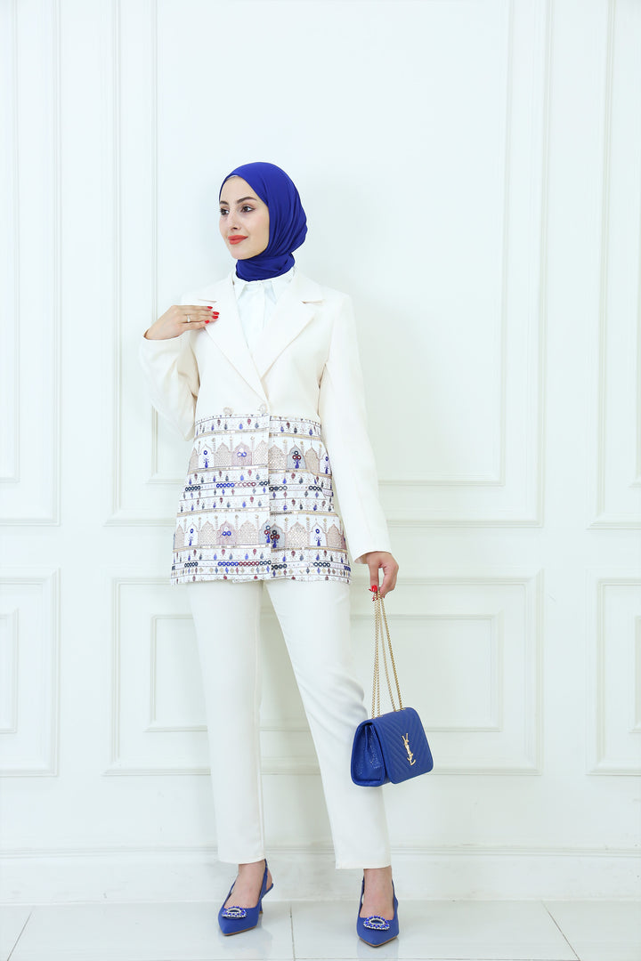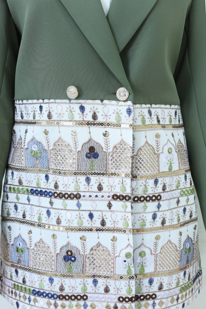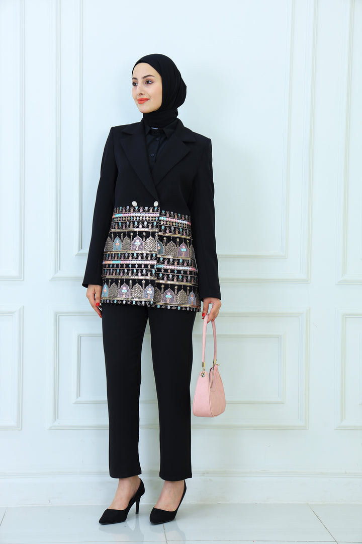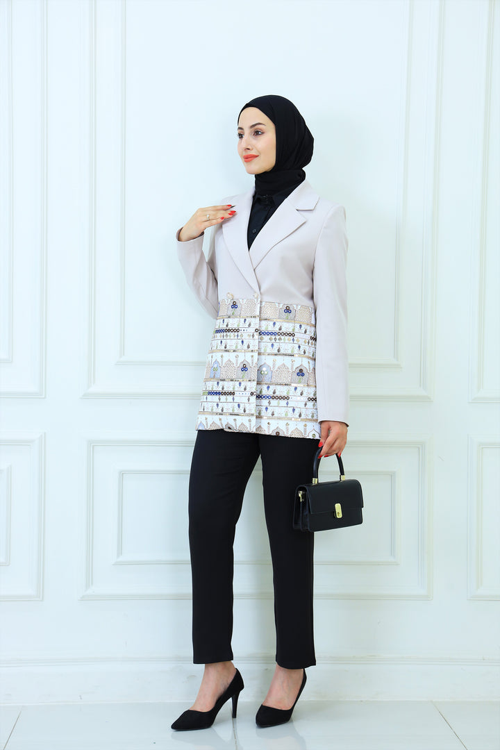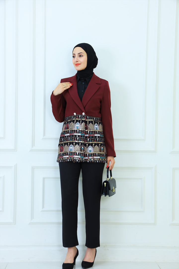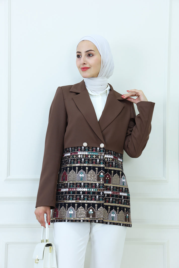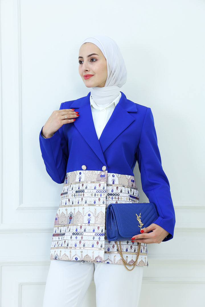 التفاصيل: مصمم لإبهار، هذا البليزر الأنيق يعرض تطريزًا أماميًا يترك انطباعًا جريئًا ولكنه أنيق. مصنوع من قماش رسمي فاخر مع حزام خصر متناسق، إنه القطعة المثالية لك لتبرز في الاجتماعات، العشاء، أو الملابس اليومية الراقية.