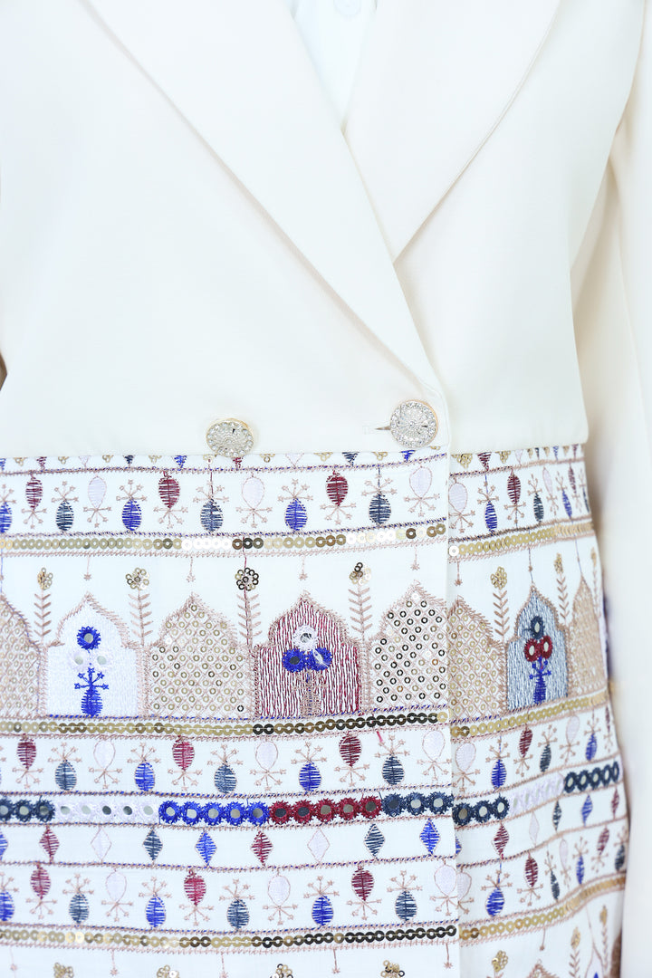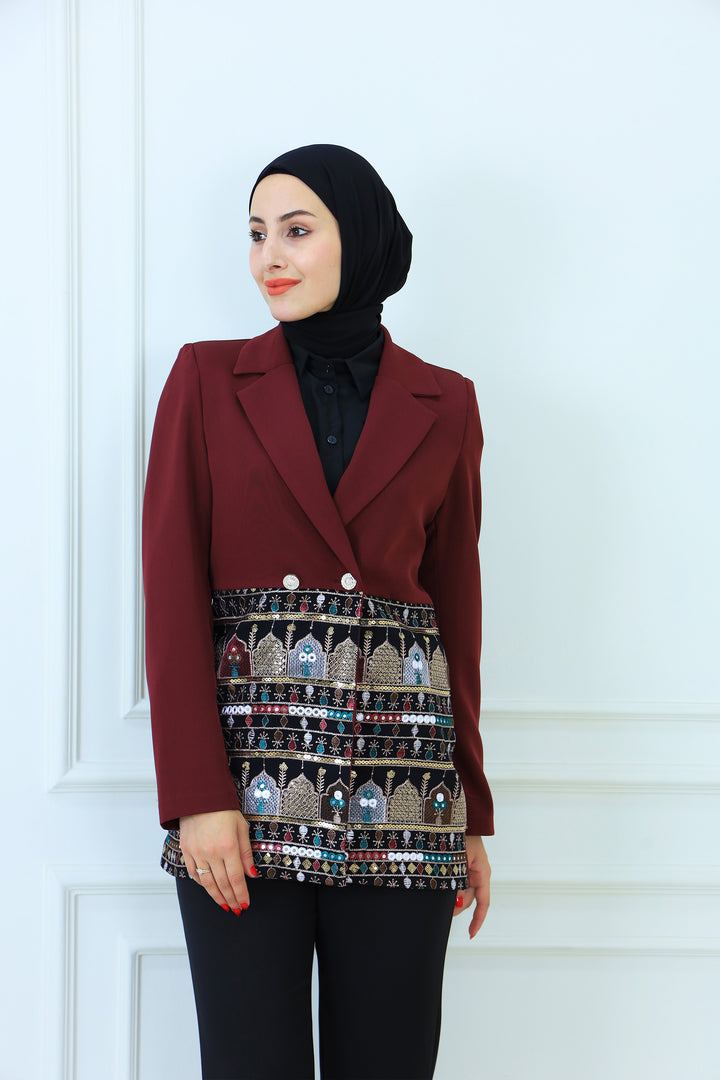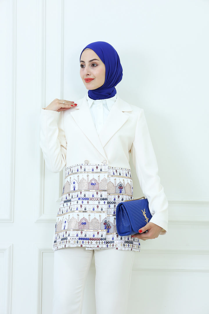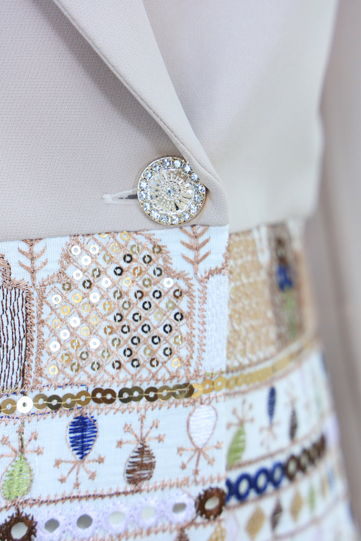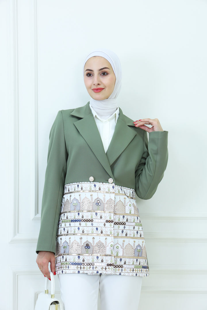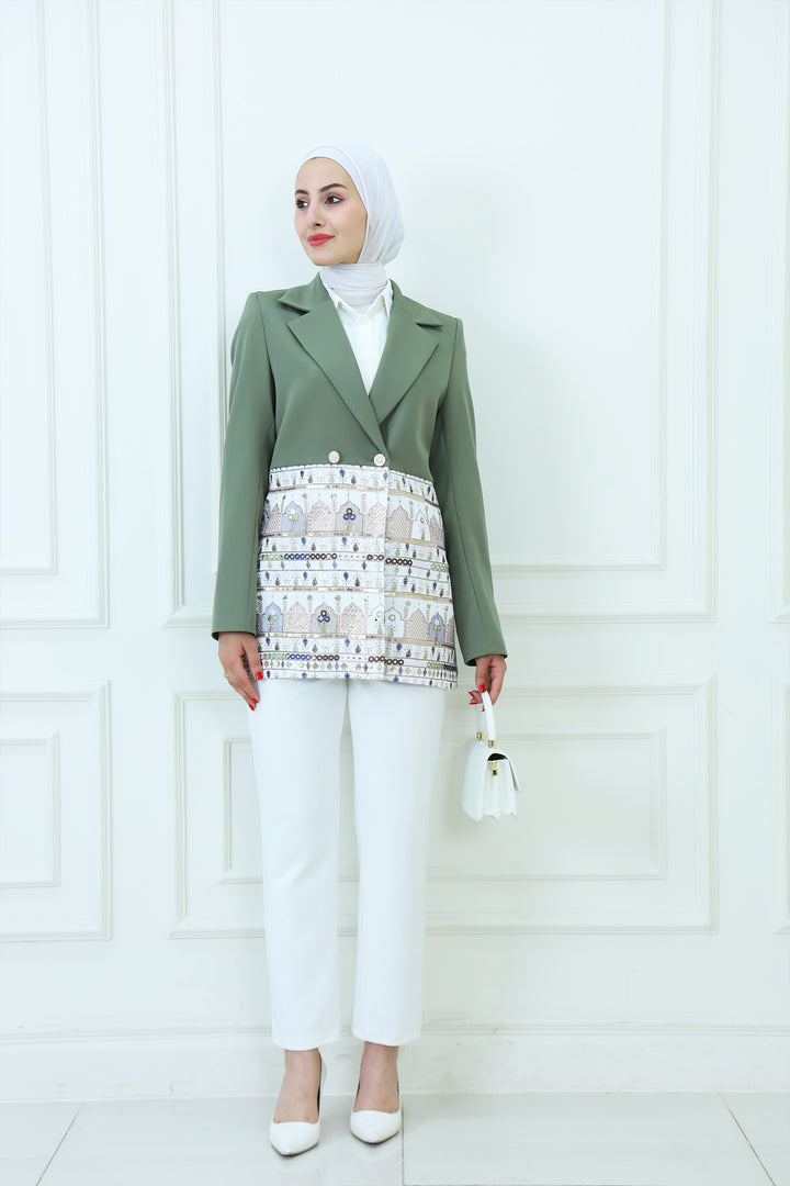 التفاصيل: مصمم لإبهار، هذا البليزر الأنيق يعرض تطريزًا أماميًا يترك انطباعًا جريئًا ولكنه أنيق. مصنوع من قماش رسمي فاخر مع حزام خصر متناسق، إنه القطعة المثالية لك لتبرز في الاجتماعات، العشاء، أو الملابس اليومية الراقية.