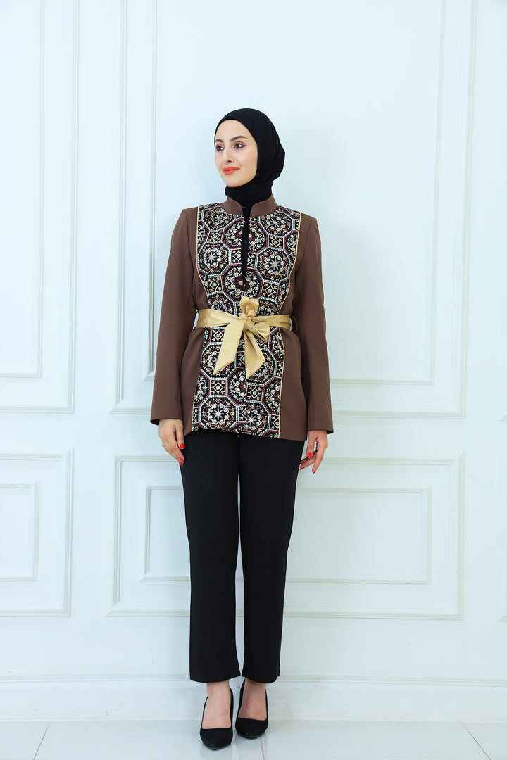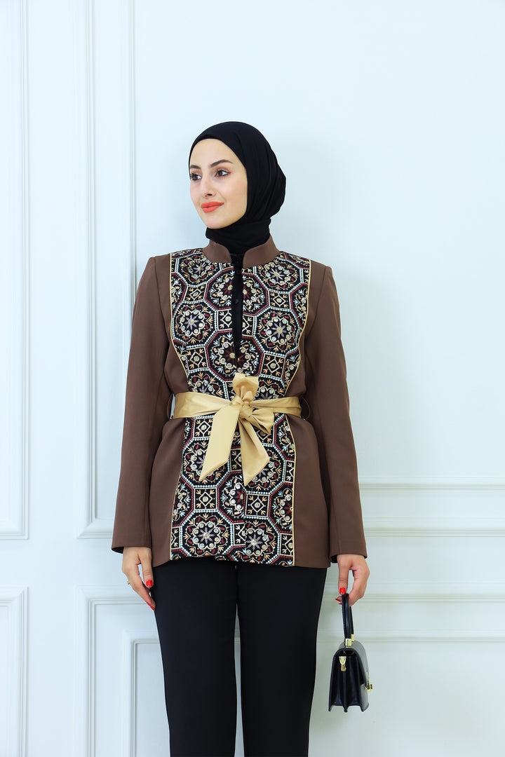 التفاصيل: مصمم لإبهار، هذا البليزر الأنيق يعرض تطريزًا كاملًا في المقدمة مما يجعل بيانًا جريئًا ولكنه أنيق. مصنوع من قماش رسمي فاخر مع حزام خصر متناسق، إنه القطعة المثالية لإطلالات مميزة في الاجتماعات، العشاء، أو ارتداء يومي راق.