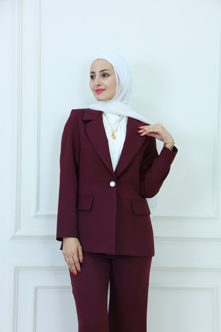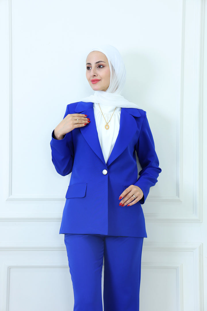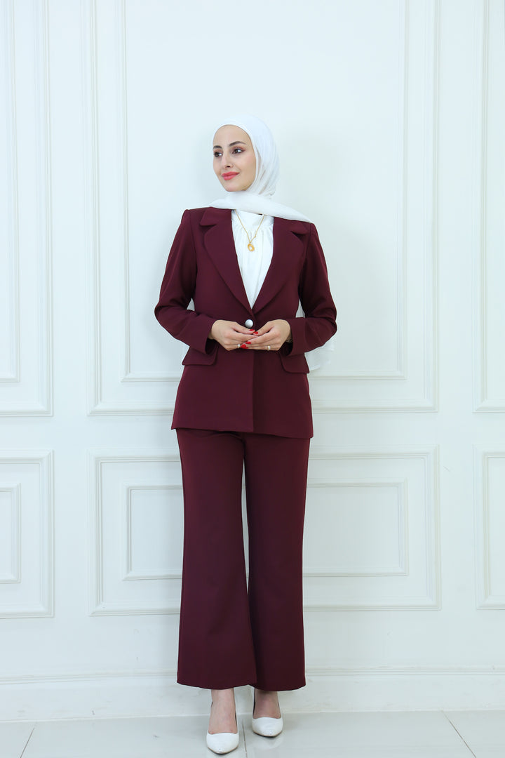 التفاصيل: بدلة رسمية حديثة مصممة للأناقة - تتميز بجاكيت قياسي مع تفاصيل الأزرار وسروال مفصل متطابق للحصول على مظهر حاد ومتطور.