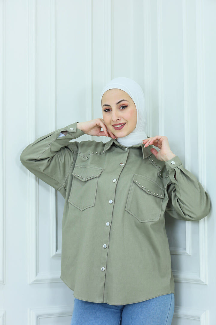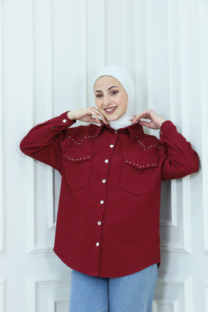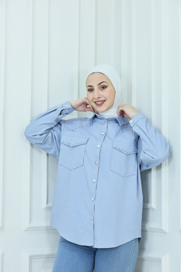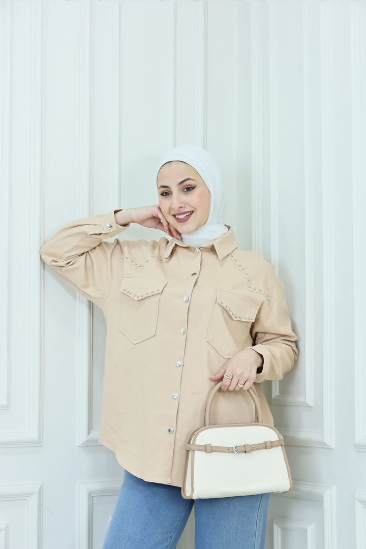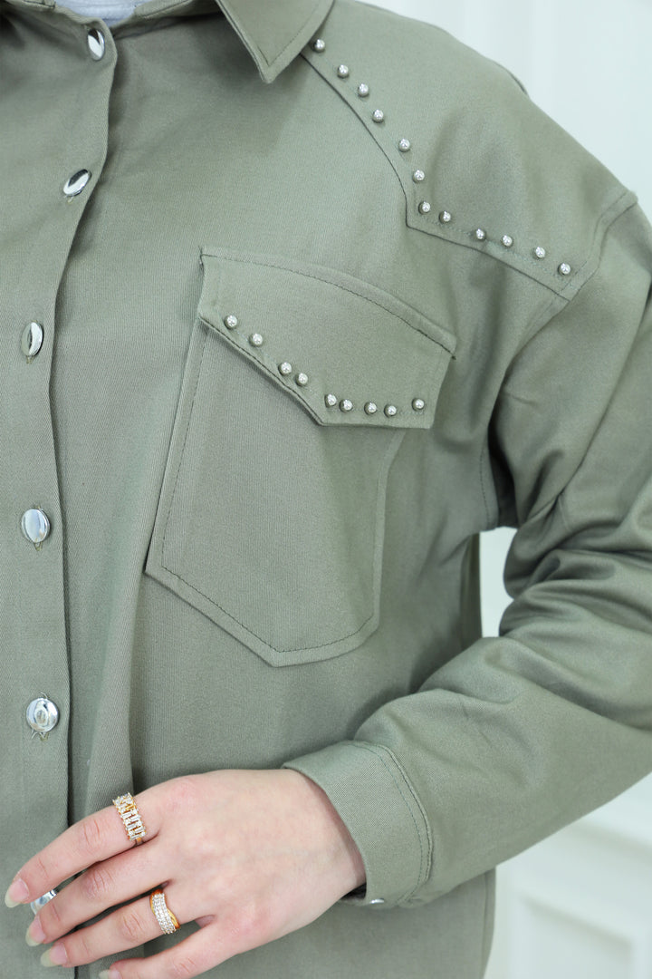 التفاصيل: قميص من الكتان مع لؤلؤ