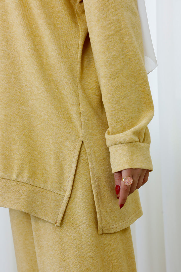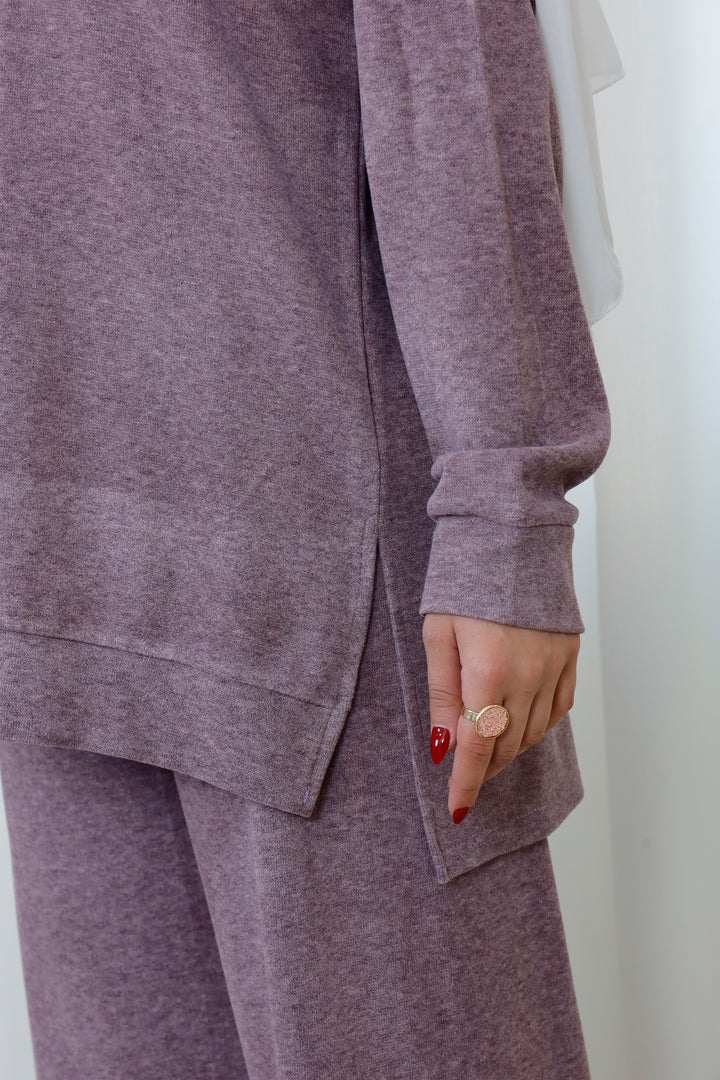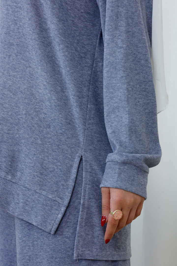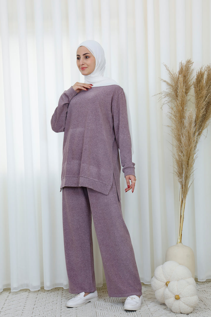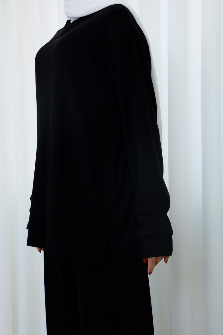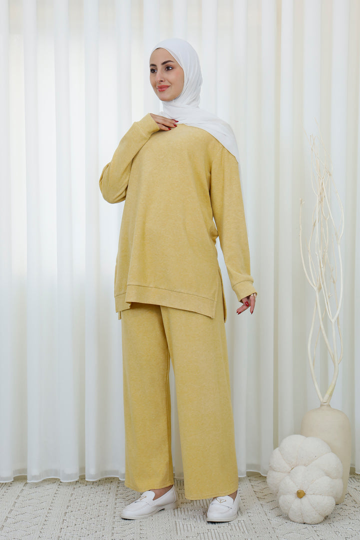 Enjoy sporty comfort and modest style with this two-piece tracksuit designed for relaxed movement and everyday wear. The top comes in a loose, longline cut with side slits, giving you full coverage while allowing easy mobility. The matching wide-leg pants offer a comfortable fit that feels light and effortless throughout the day.