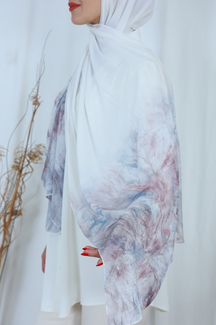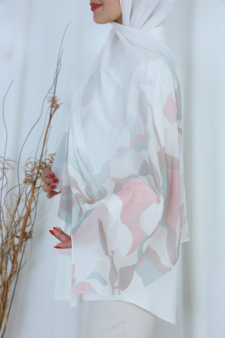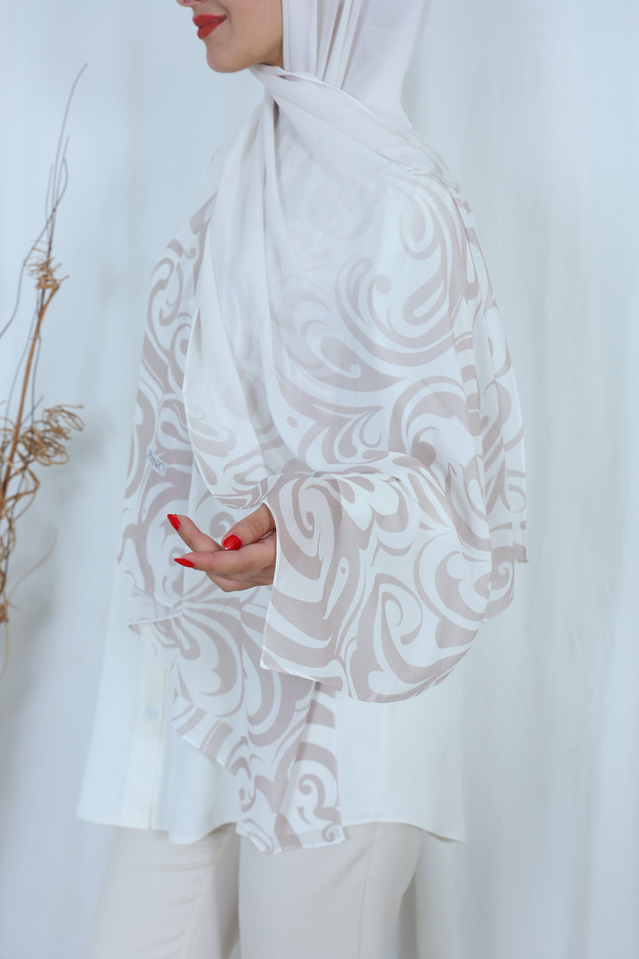 احتضن الأناقة مع هذا الحجاب الشيفون المزخرف المصمم لتدلي ناعم ورشيق. خفيف الوزن وقابل للتنفس، يقدم مزيجًا مثاليًا من الراحة والرقي للمظهرين غير الرسمي والرسمية. تضيف هذه الوشاح بيانًا دقيقًا لخزانة ملابسك المحتشمة مع نمطها الرقيق وملمسها المتدفق.