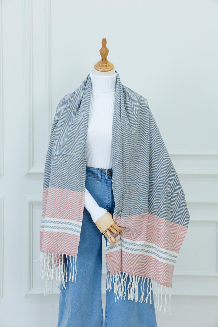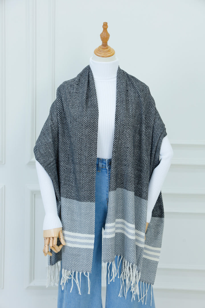 مثالية للحفاظ على الدفء في المكتب، أثناء السفر، أو لإضافة لمسة نهائية أنيقة إلى ملابسك العادية في عطلة نهاية الأسبوع، هذه اللفافة الكتفية المتعددة الاستخدامات هي إكسسوار أساسي في الطقس البارد.