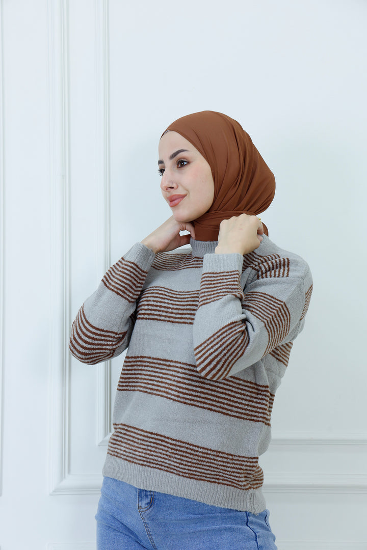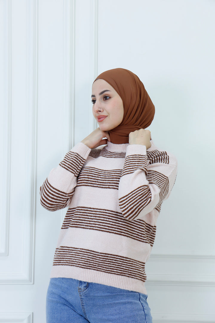 ارفع أسلوبك غير الرسمي مع هذا سويتر محبوك مخطط أساسي. يتميز بنمط خطوط أفقية كلاسيكية و ياقة مزيفة مريحة، هذا السويتر يوفر الدفء دون التضحية بالأناقة. الملاءمة المتواضعة تتناسب بسهولة مع الجينز أو السراويل لمظهر مريح مثالي لـ الخريف و الشتاء. عنصر أساسي في خزانة الملابس للارتداء اليومي المتواضع.