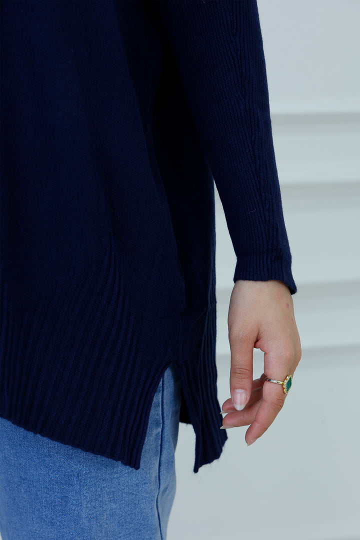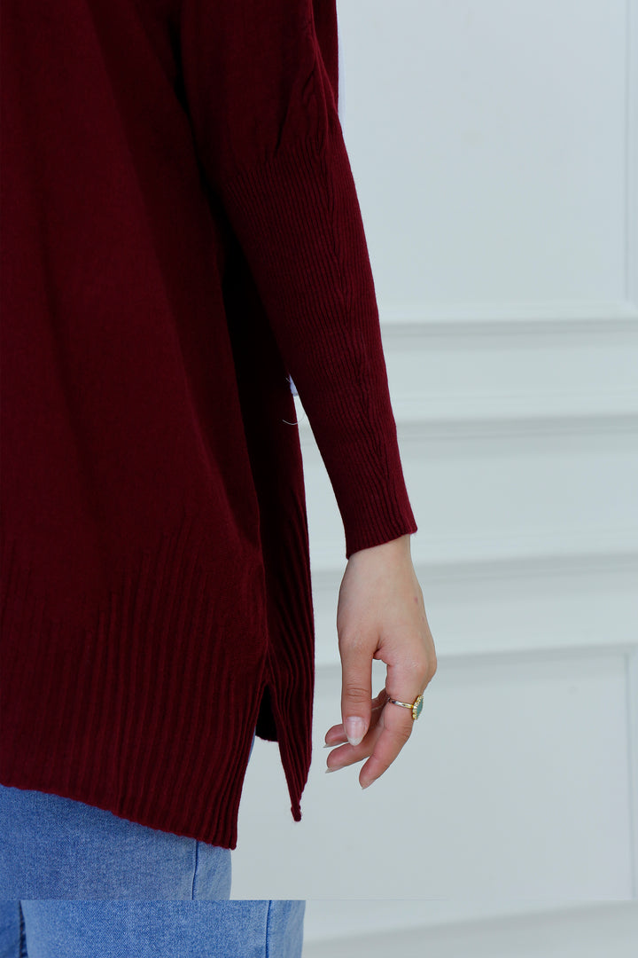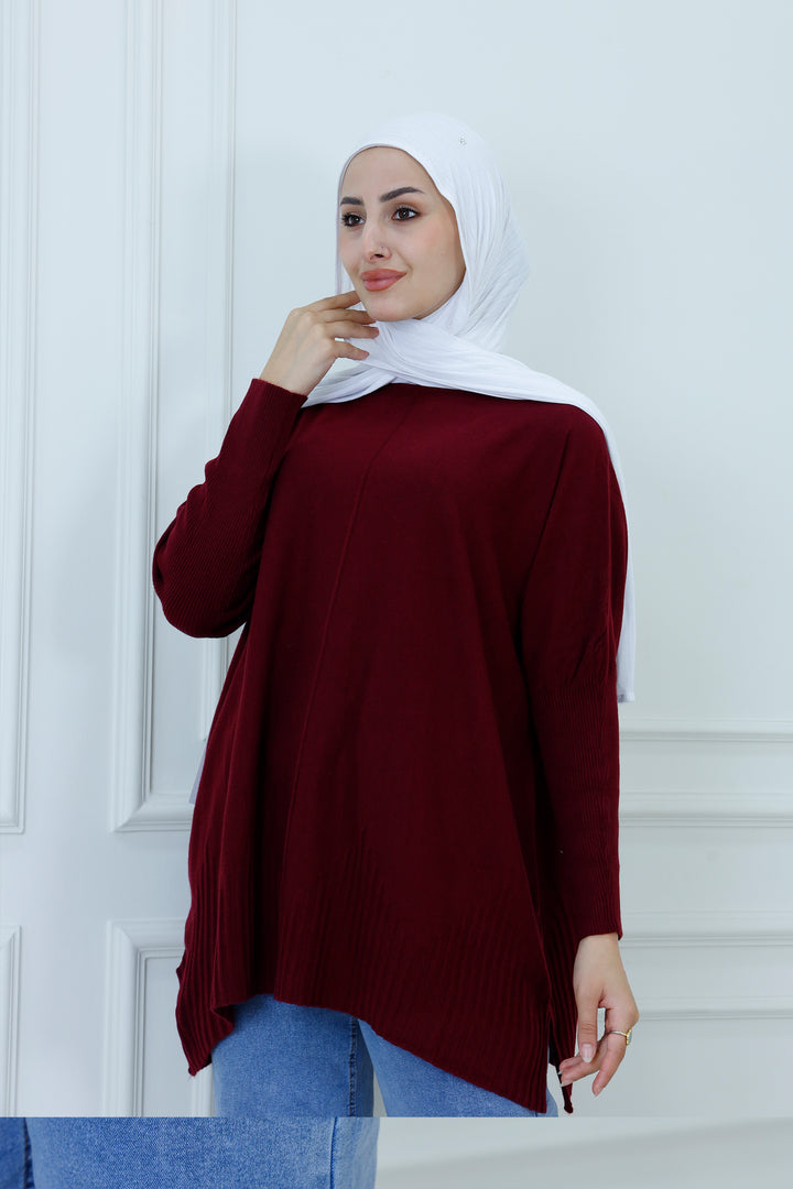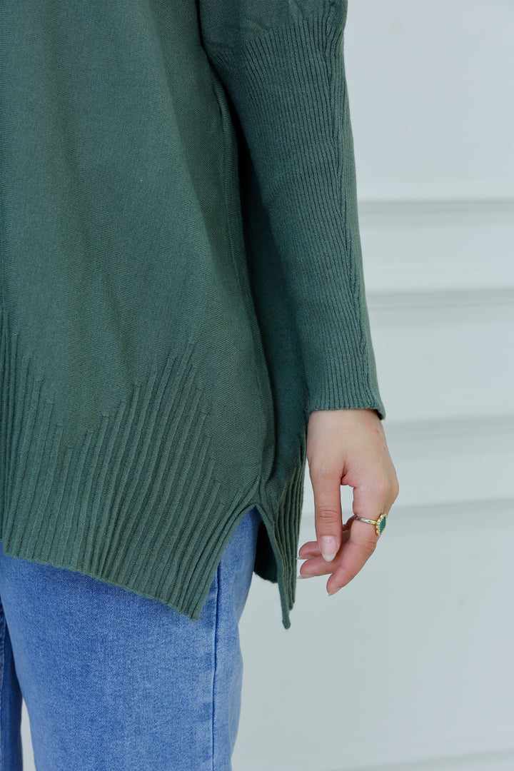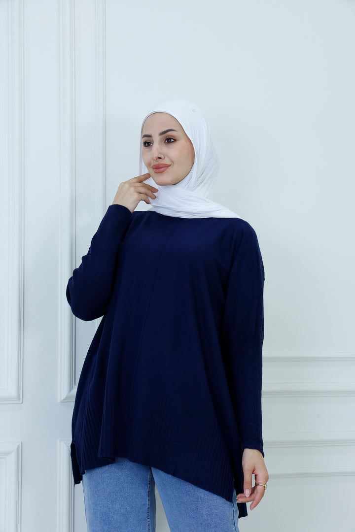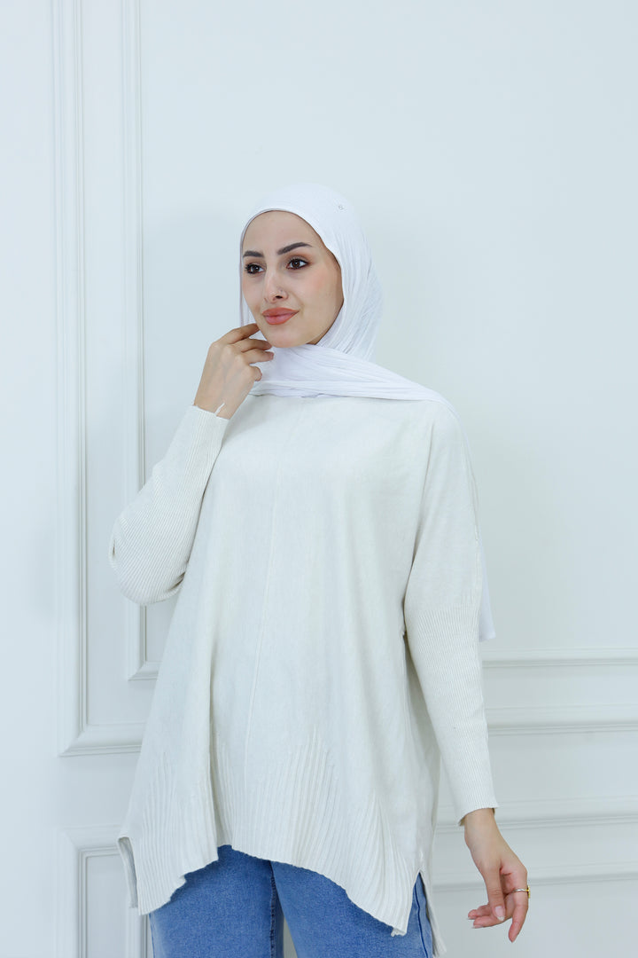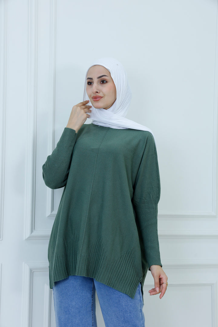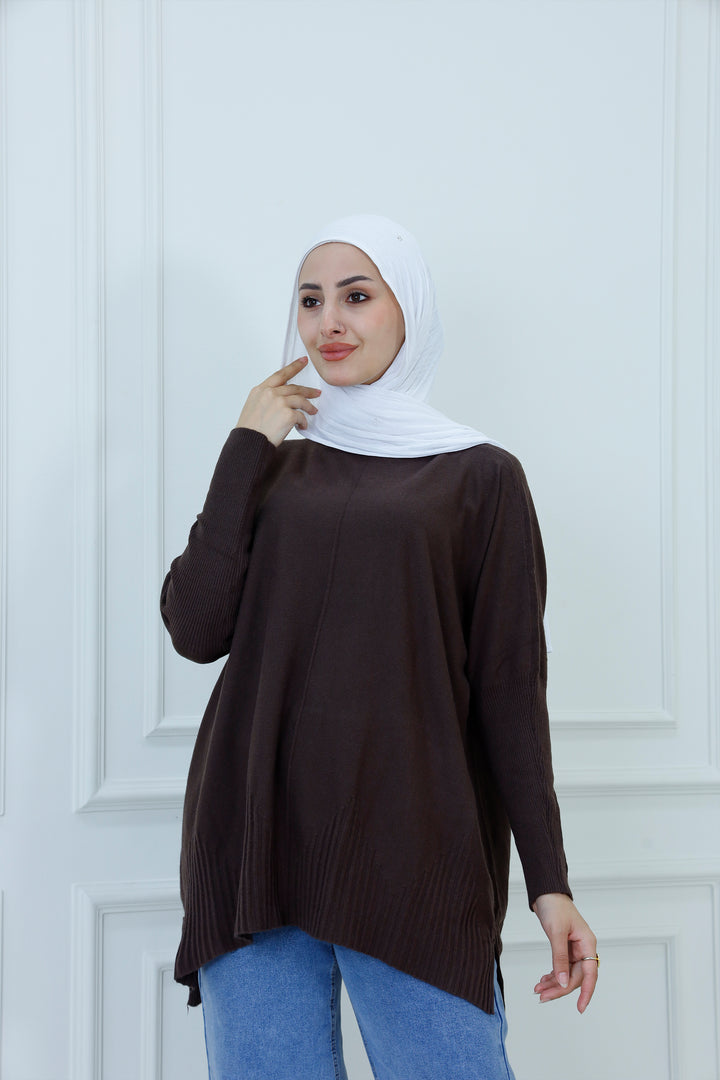 اكتشف الراحة المطلقة و الأناقة المحتشمة مع هذا سويتر محبوك مريح. يتميز هذا الكبير الحجم، ذو الأكمام الطويلة بتصميم فضفاض، و ياقة عالية، و حافة مشقوقة مضلعة عصرية تتناسب تمامًا مع الجينز أو الليجنز. مادته الناعمة والقابلة للتنفس مثالية للتكديس. قطعة أساسية متعددة الاستخدامات لخزانة الموضة المحتشمة.