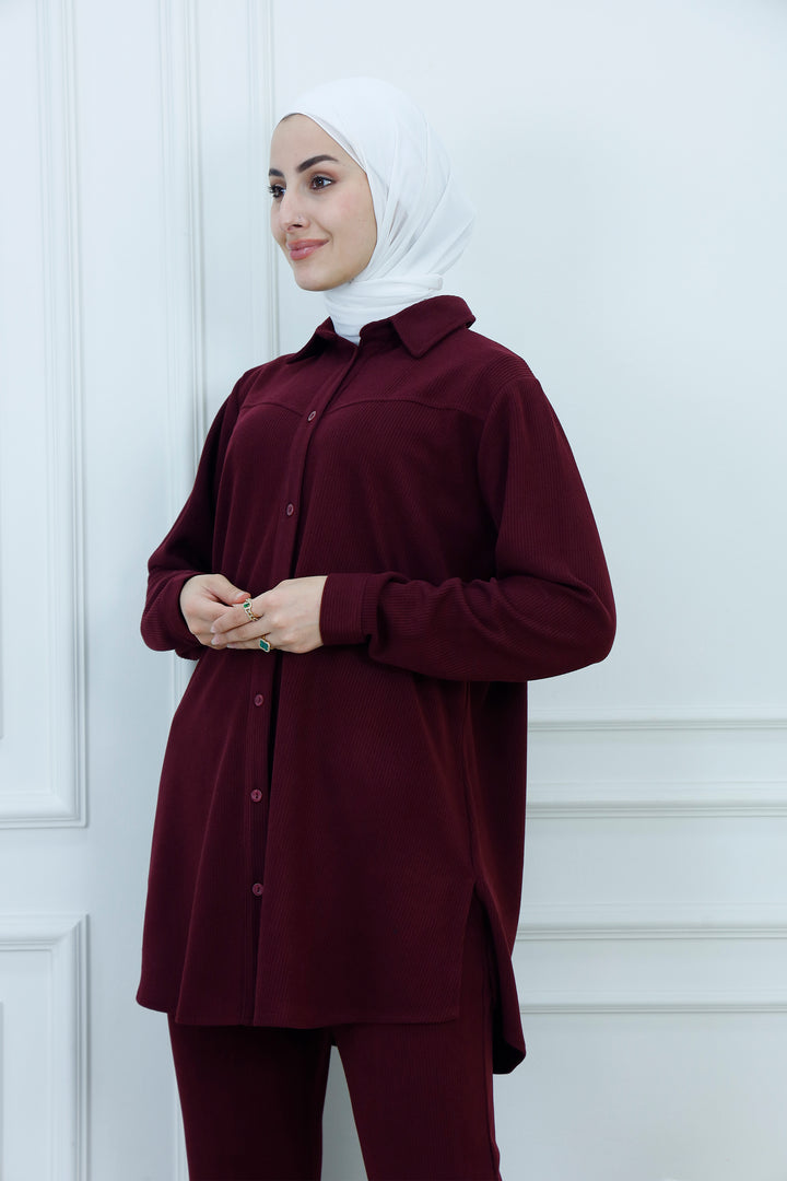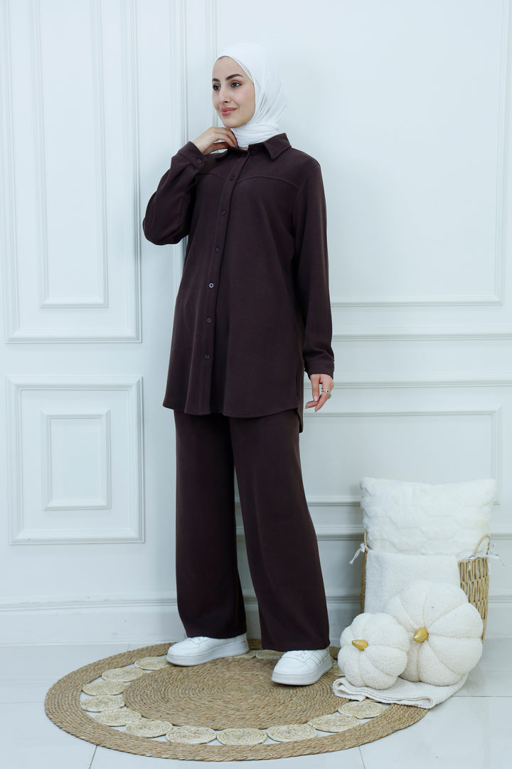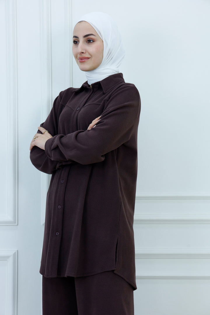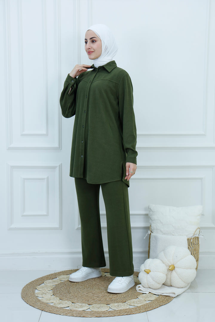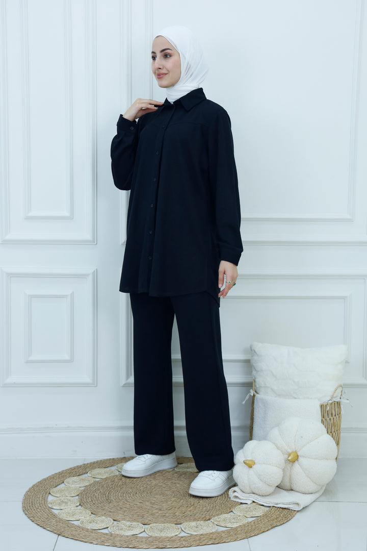 هذا مجموعة متطابقة مكونة من قطعتين متعددة الاستخدامات مصممة للراحة العصرية والاحتشام السهل. تقدم ملاءمة مريحة تمامًا من الرأس إلى القدم، توفر هذه المجموعة مظهرًا أنيقًا ومتكاملًا على الفور. ارتديها معًا للحصول على زي منسق، أو امزج ونسق القطع مع خزانة ملابسك الحالية. مثالية للاستخدام اليومي، والسفر، أو الخروجات غير الرسمية حيث تكون الراحة والأناقة هما الأساس.