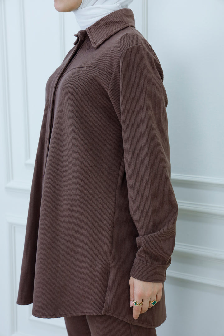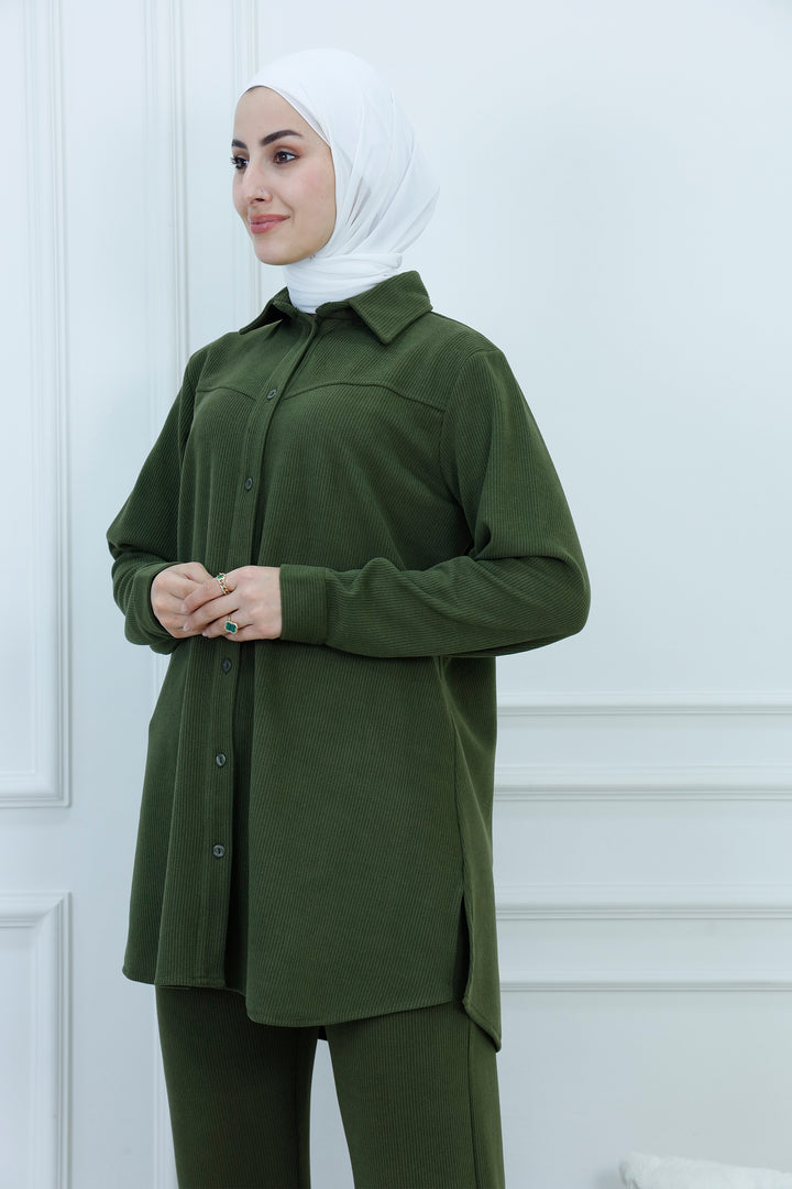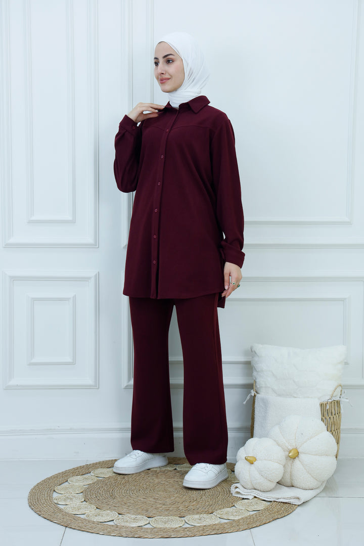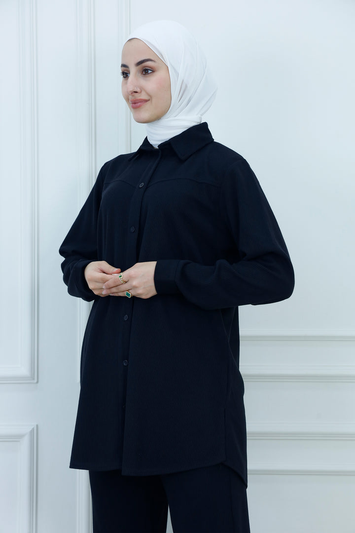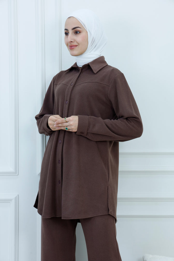 هذا مجموعة متطابقة مكونة من قطعتين متعددة الاستخدامات مصممة للراحة العصرية والاحتشام السهل. تقدم ملاءمة مريحة تمامًا من الرأس إلى القدم، توفر هذه المجموعة مظهرًا أنيقًا ومتكاملًا على الفور. ارتديها معًا للحصول على زي منسق، أو امزج ونسق القطع مع خزانة ملابسك الحالية. مثالية للاستخدام اليومي، والسفر، أو الخروجات غير الرسمية حيث تكون الراحة والأناقة هما الأساس.