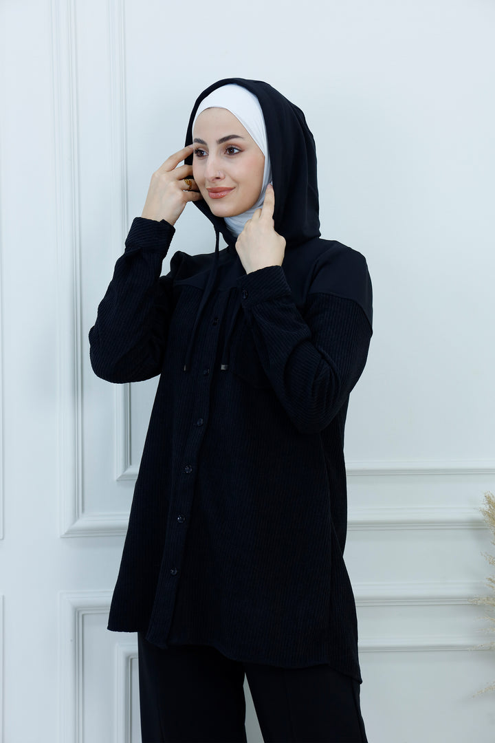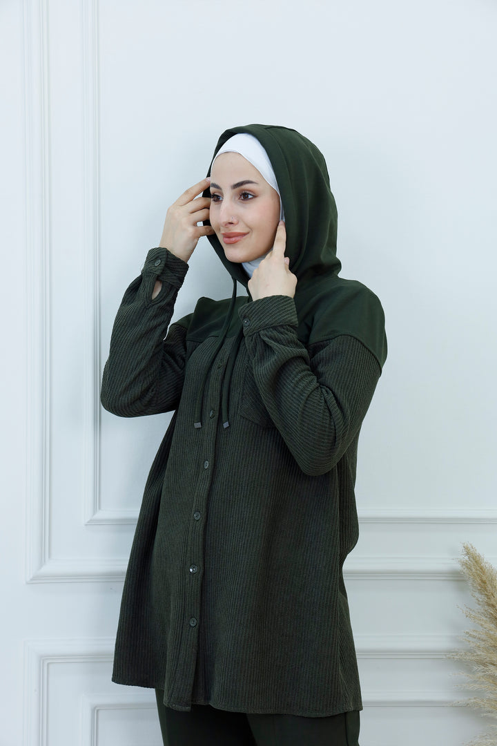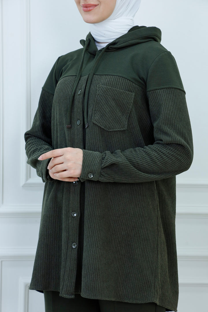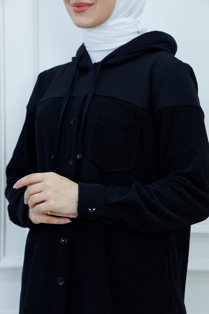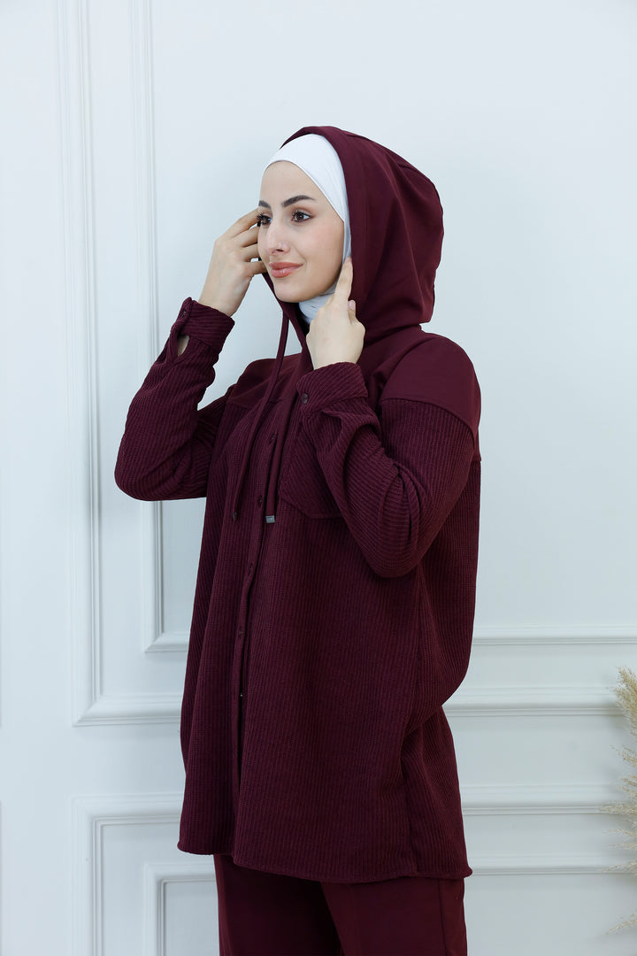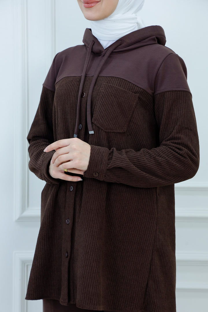 حقق مظهرًا رياضيًا أنيقًا مع مجموعة البدلة الرياضية المنسقة بشكل مثالي. الجزء العلوي هو هودي طويل الخط، بسحاب كامل يتميز بتصميم فريد: لوحة محبوكة ذات نسيج، مضلعة عبر الصدر والكتفين مقترنة بقماش ناعم في النصف السفلي والأكمام. يضيف هذا التباين اللافت عمقًا وأناقة فاخرة. يضمن طول التونيك السخي تغطية مريحة فوق الوركين، وتكتمل الإطلالة بـ سروال واسع متناسق للحصول على شكل متوازن ومريح. مجموعة أساسية لأناقة بلا جهد وراحة طوال اليوم.