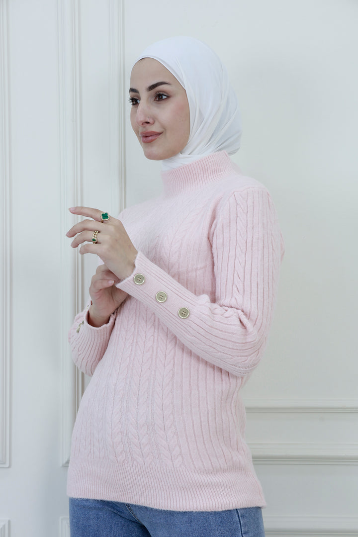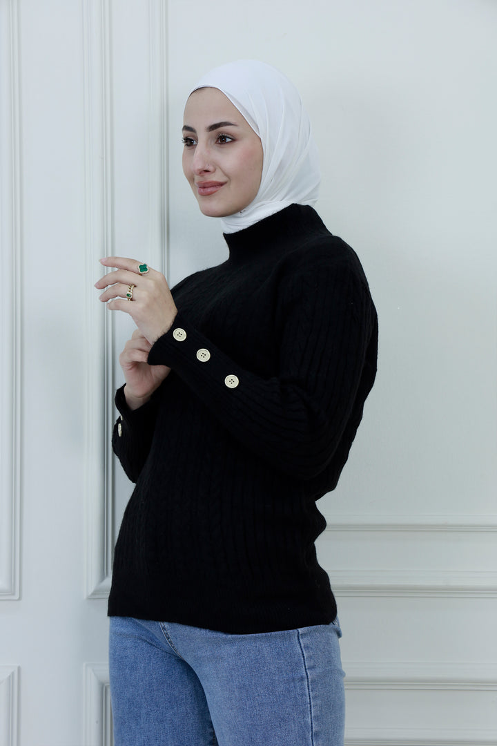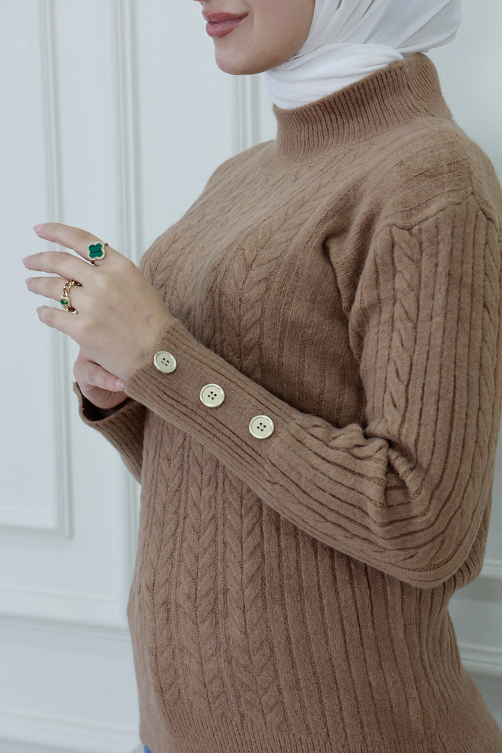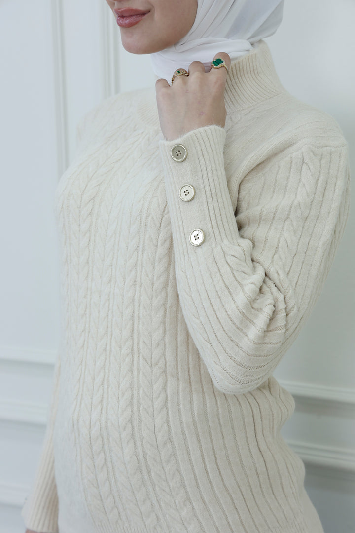 سترة نسائية محبوكة بكابل – تفاصيل أزرار الأكمام