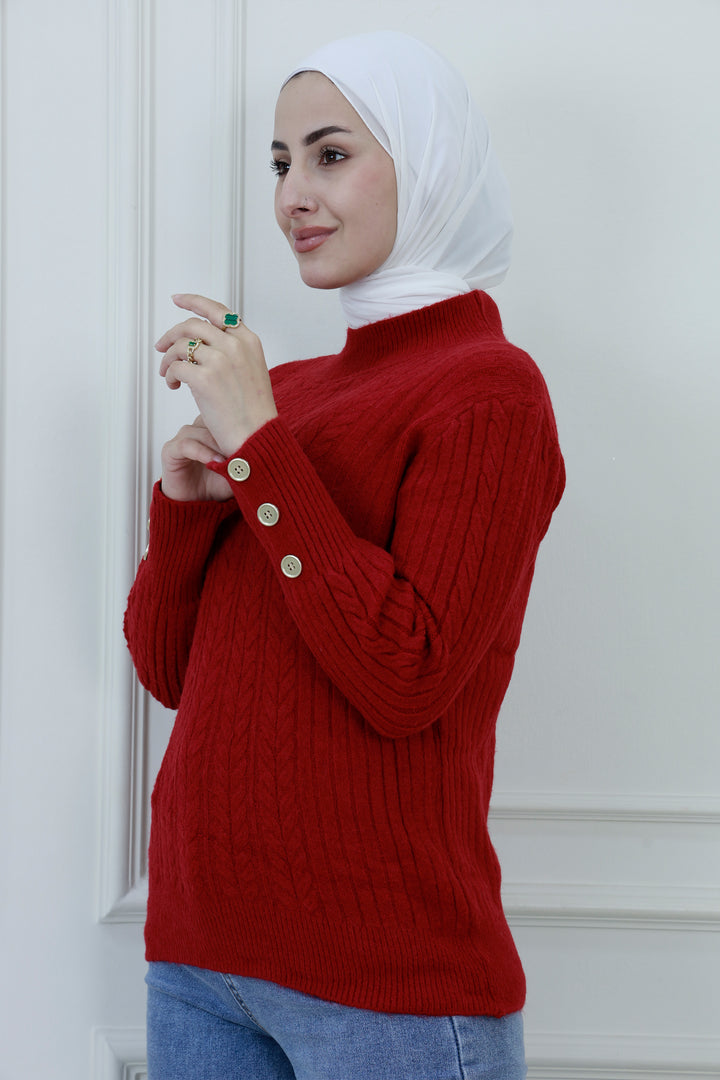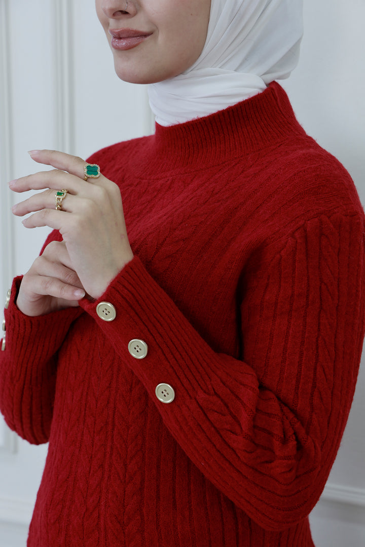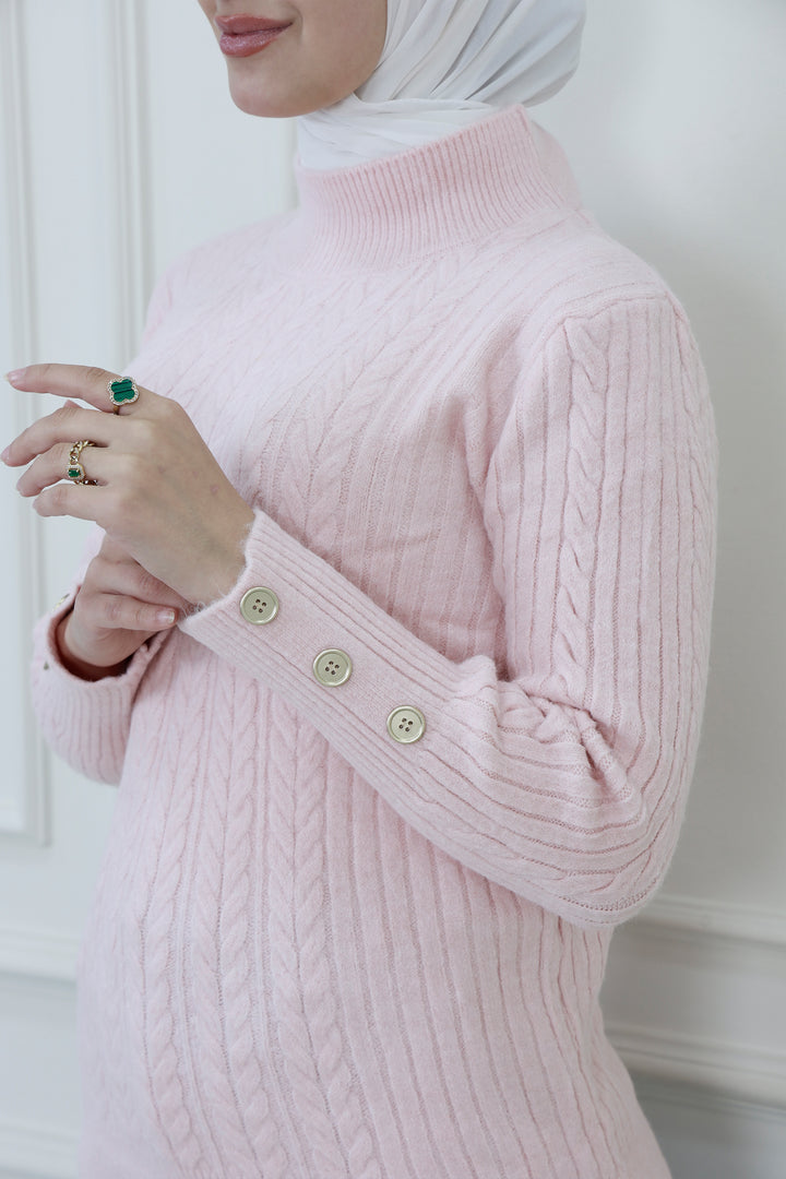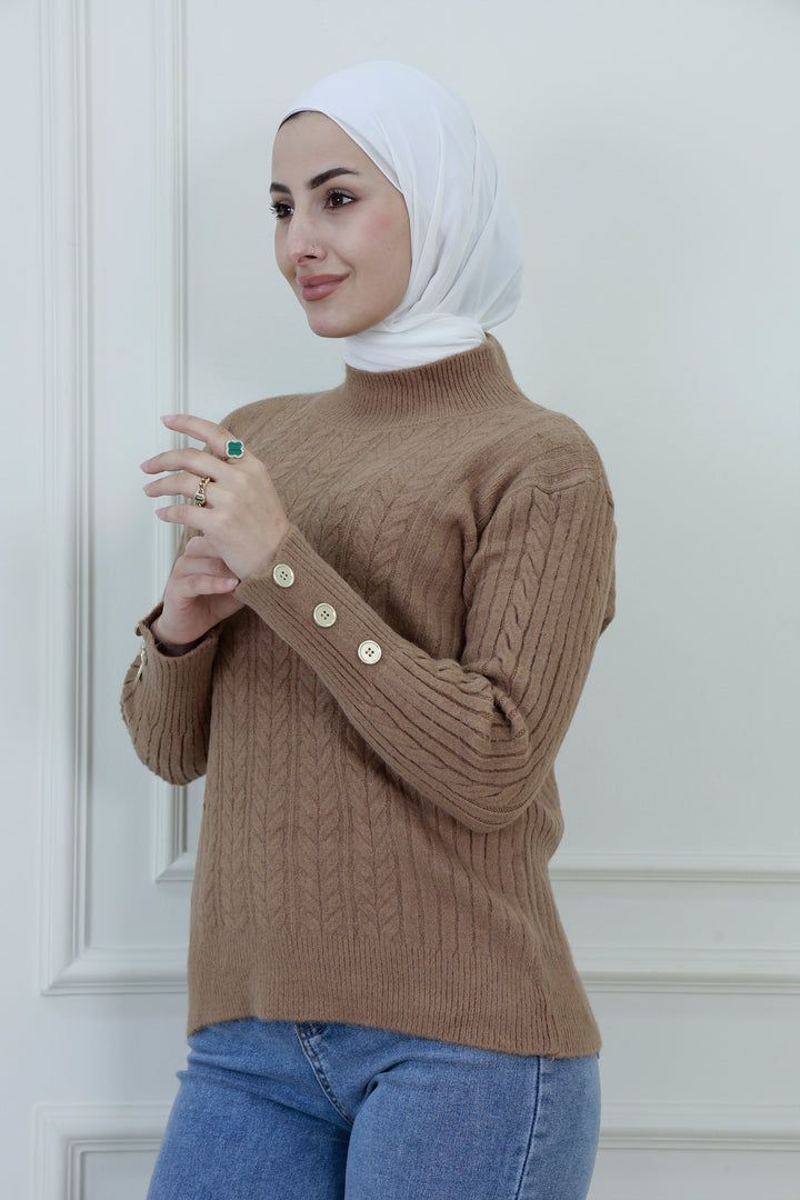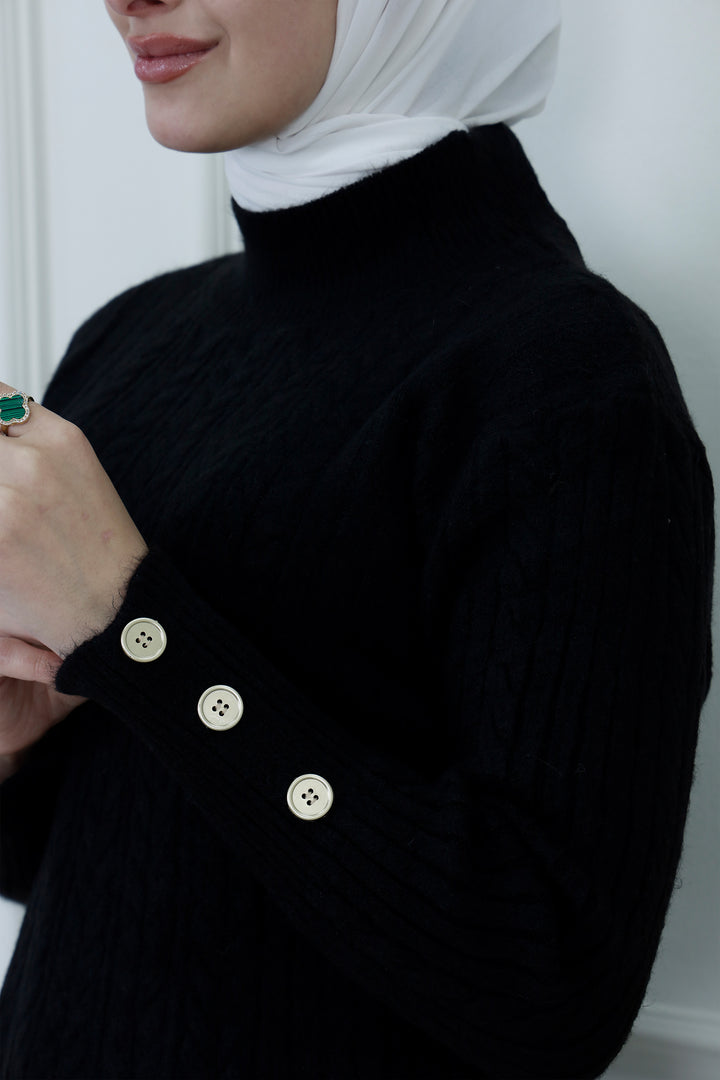 سترة نسائية محبوكة بكابل – تفاصيل أزرار الأكمام