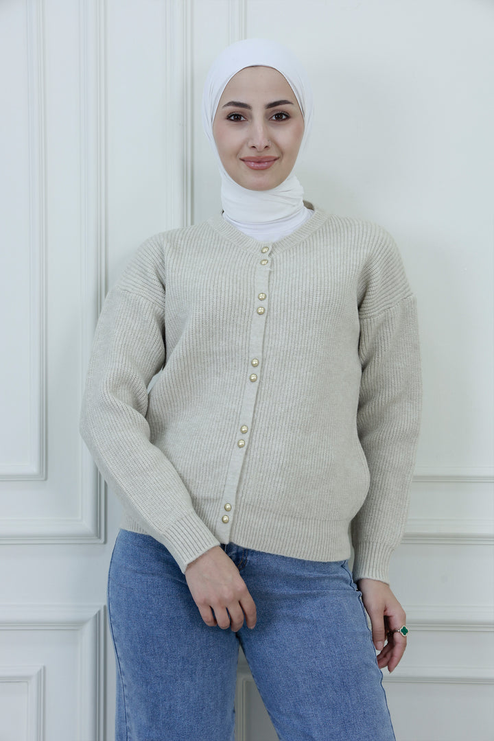 سترة محبوكة مضلعة للنساء بأزرار ذهبية
