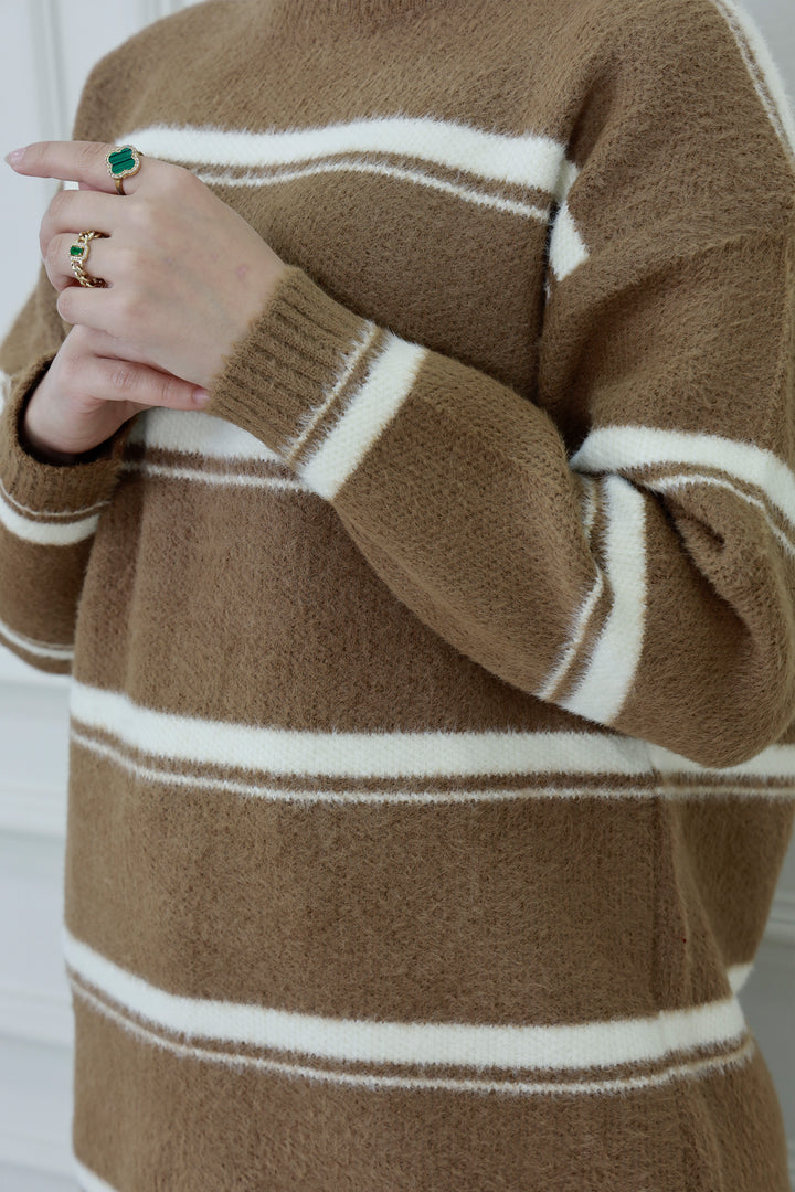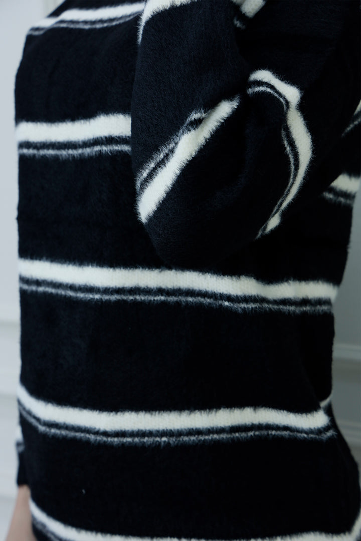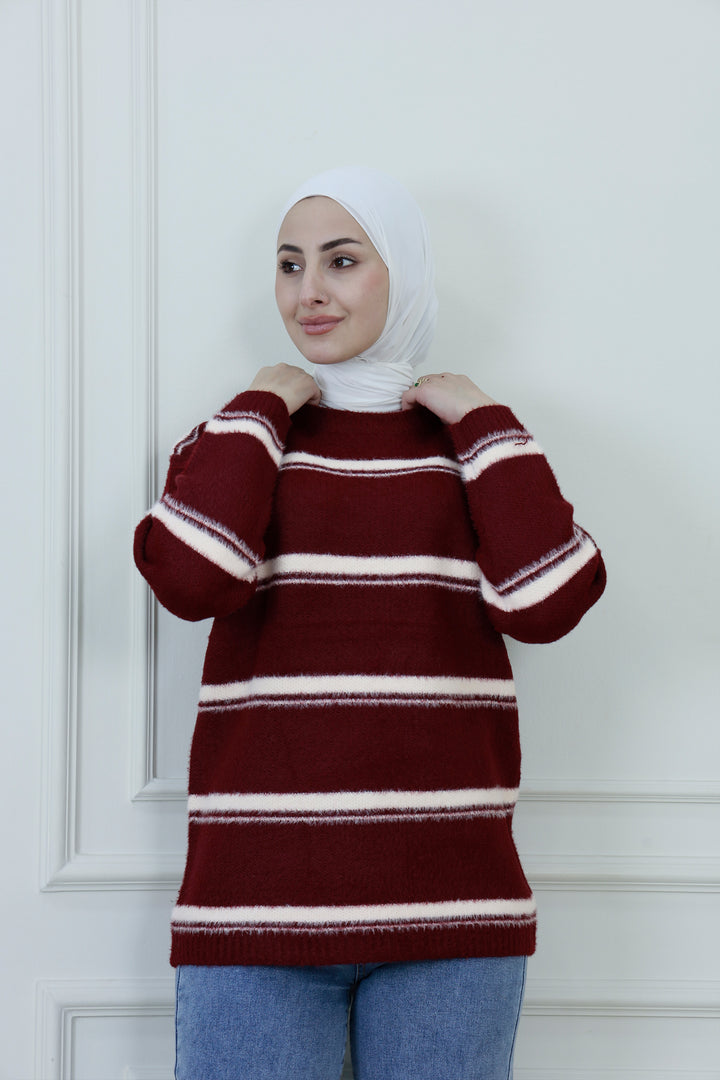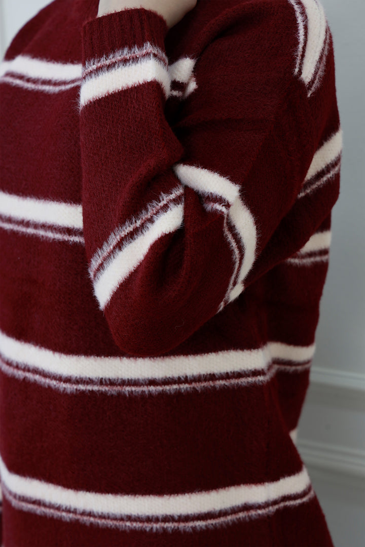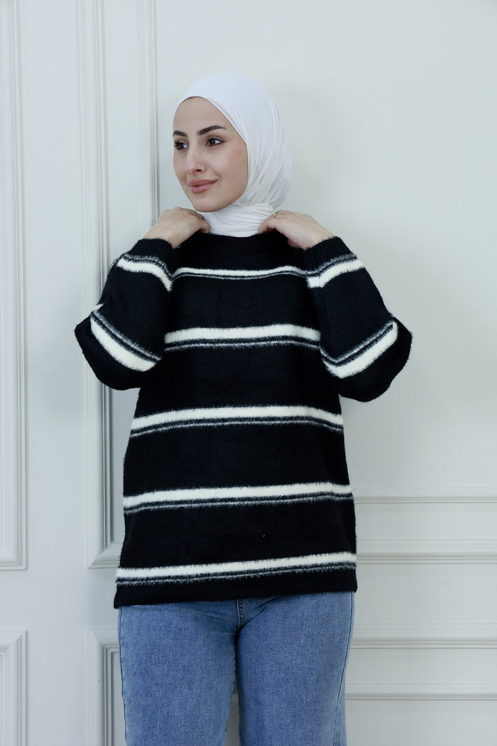 سترة نسائية مخططة فuzzy – حياكة ناعمة