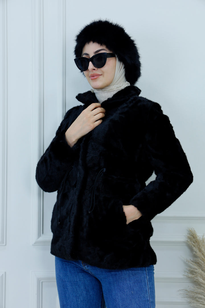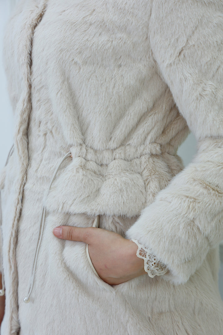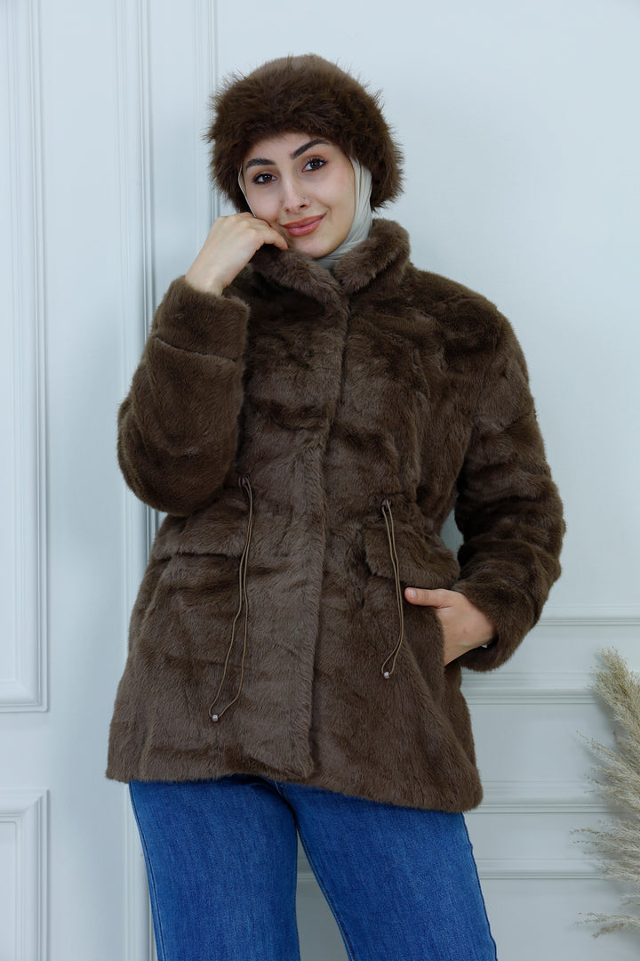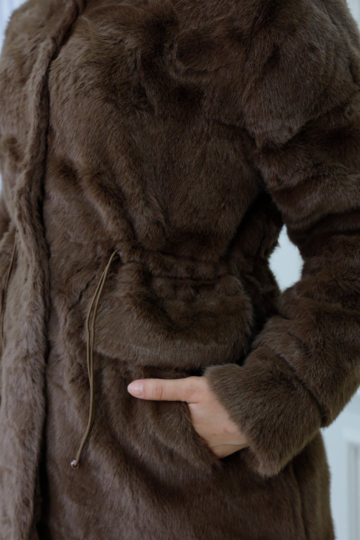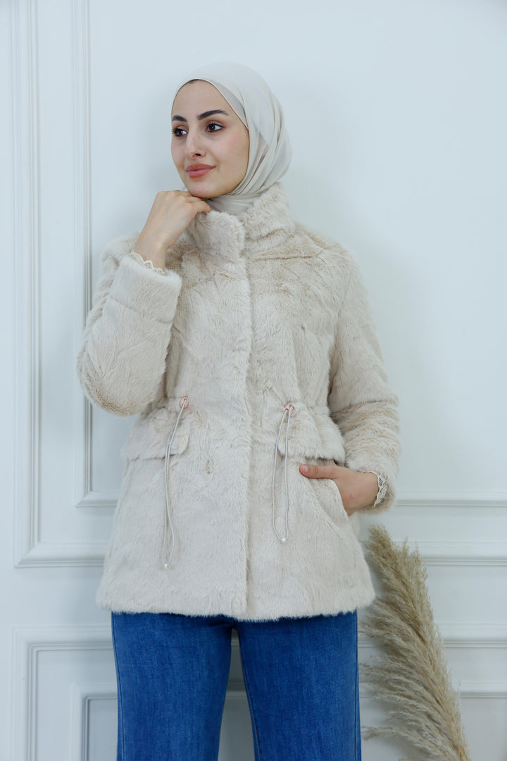 معطف نسائي من الفرو الصناعي مع خصر قابل للسحب