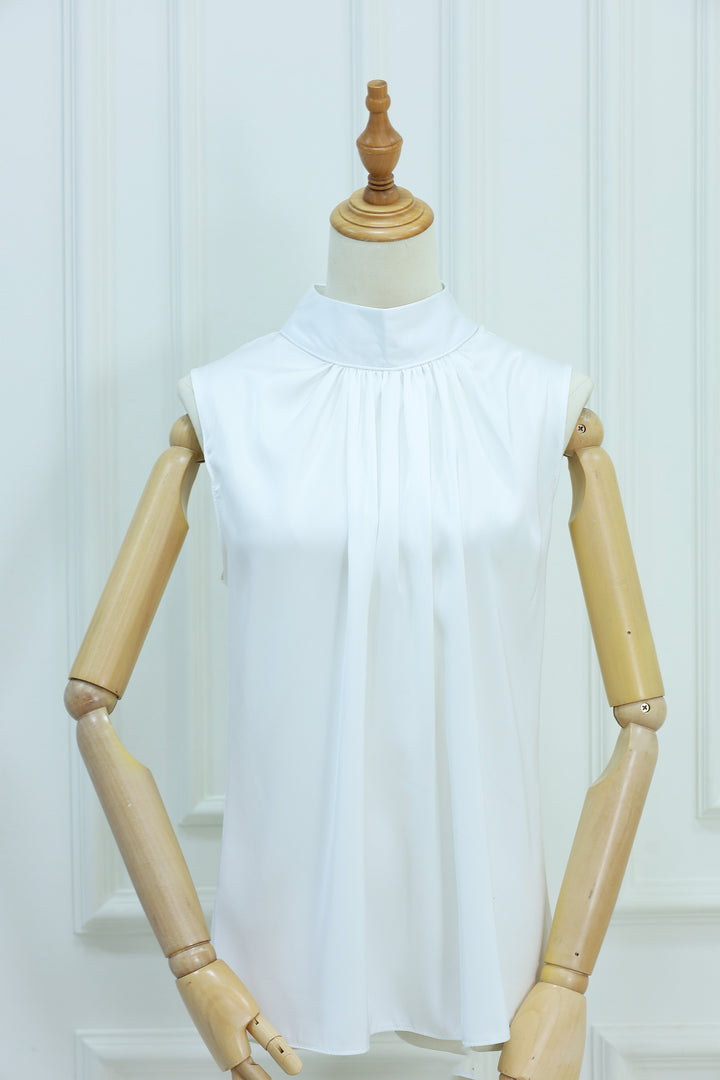 بلوزة نسائية بسيطة بلا أكمام ذات ياقة عالية بسحاب خلفي