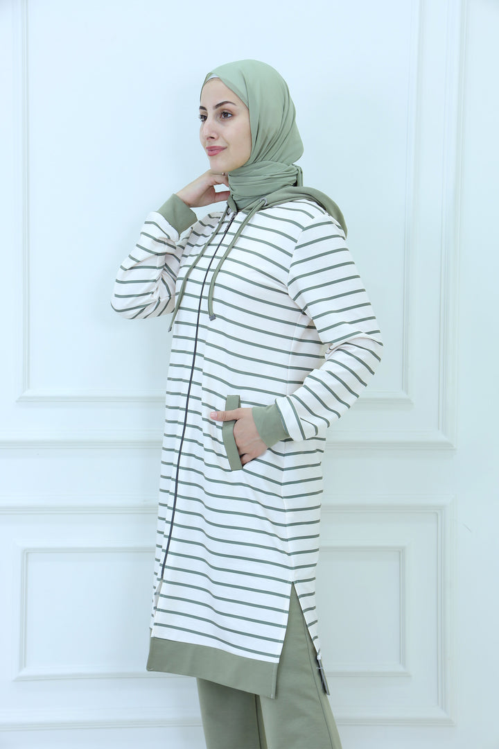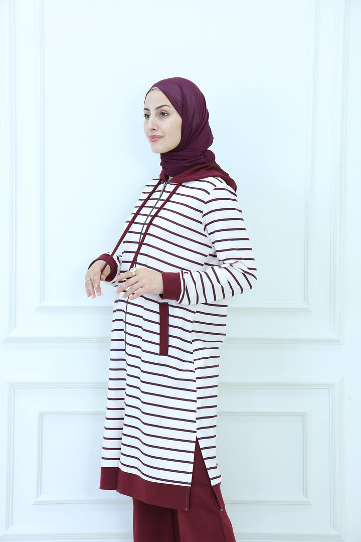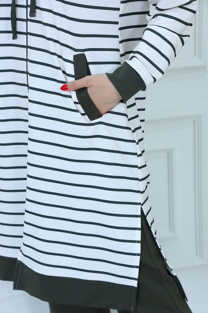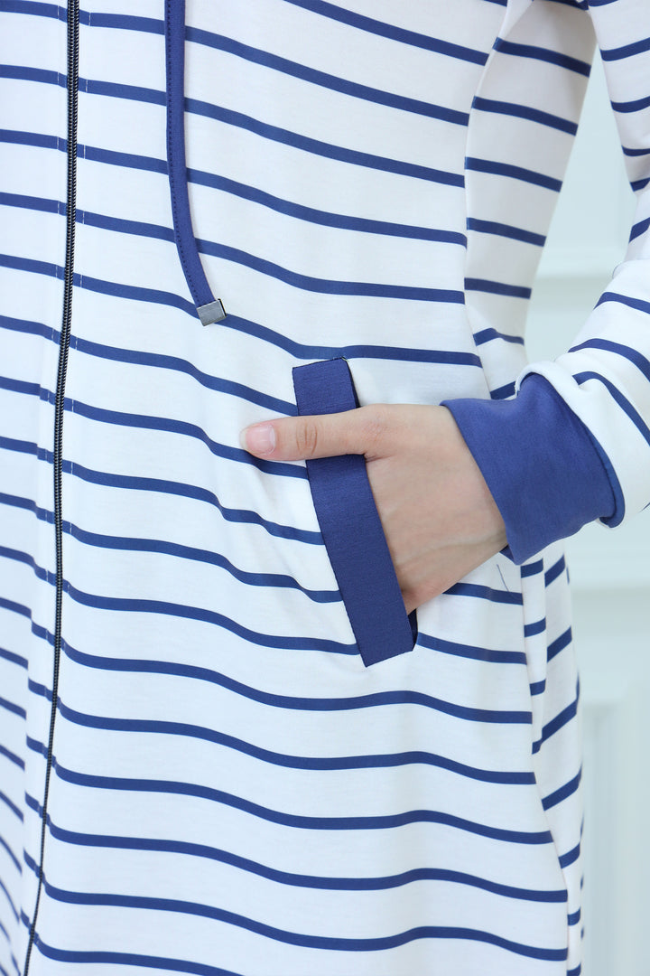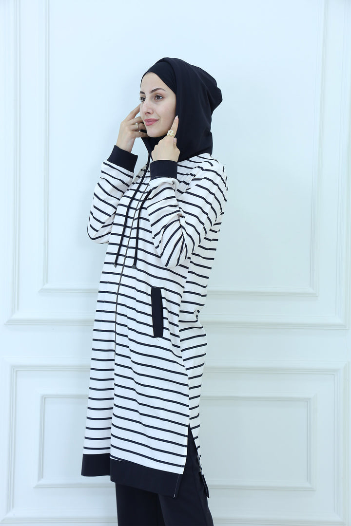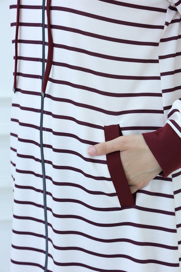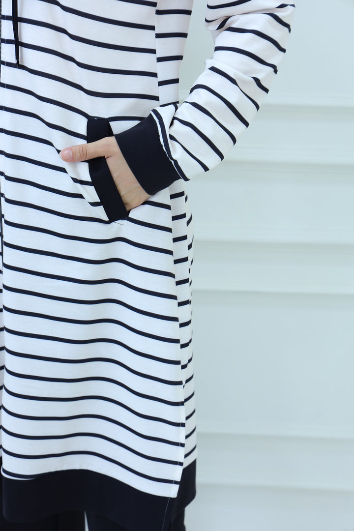 مجموعة هوديي طويلة مخططة محتشمة للنساء