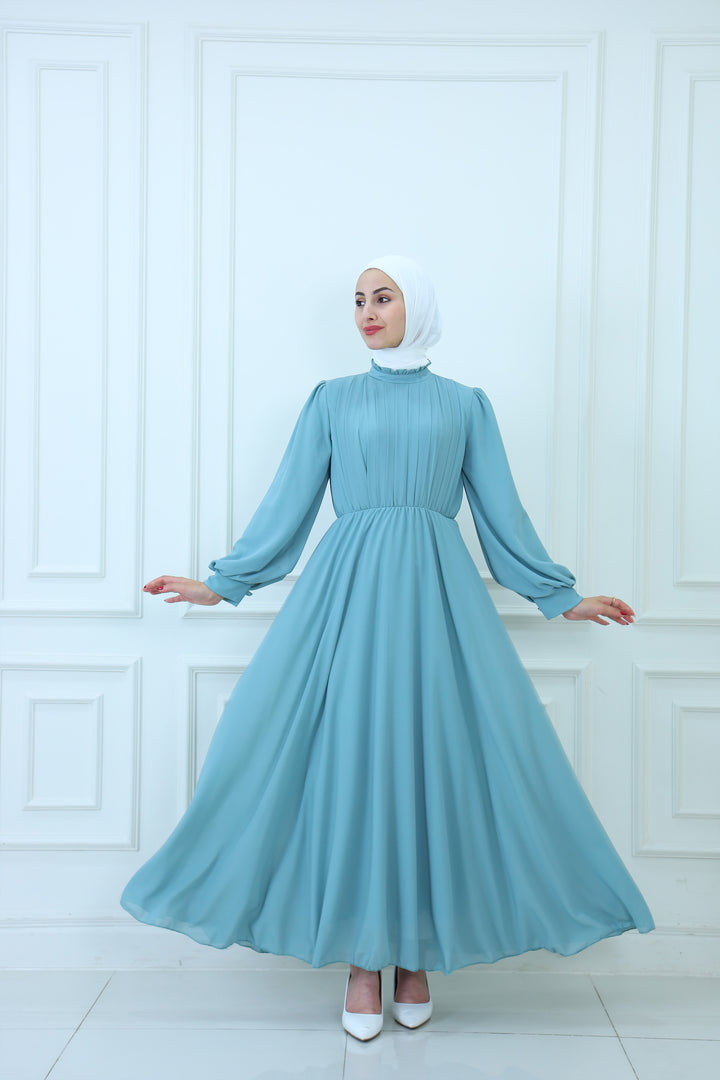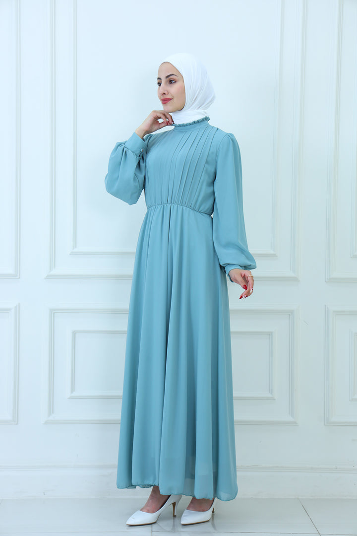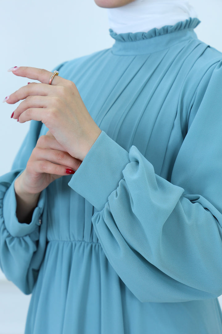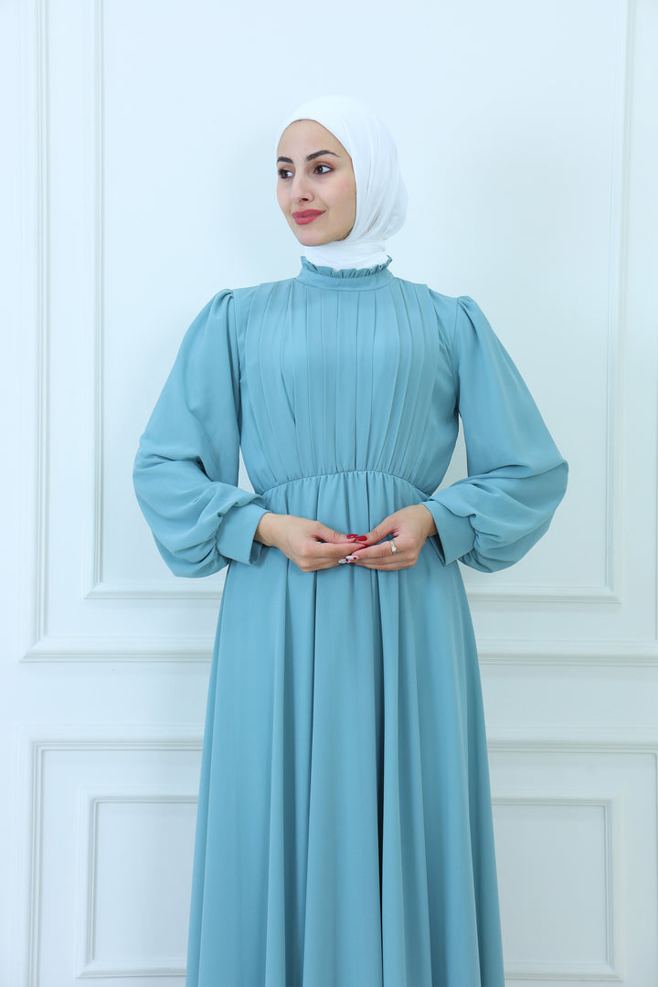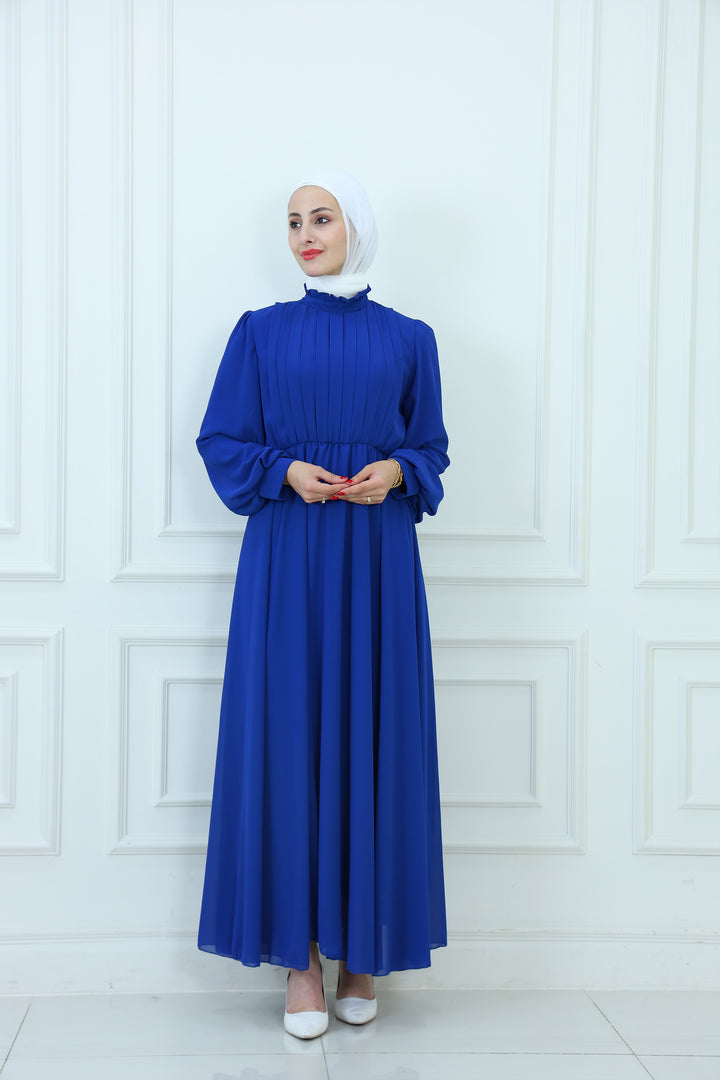 Details: Flow through your day in elegance with this pleated chest maxi dress with tied waistline