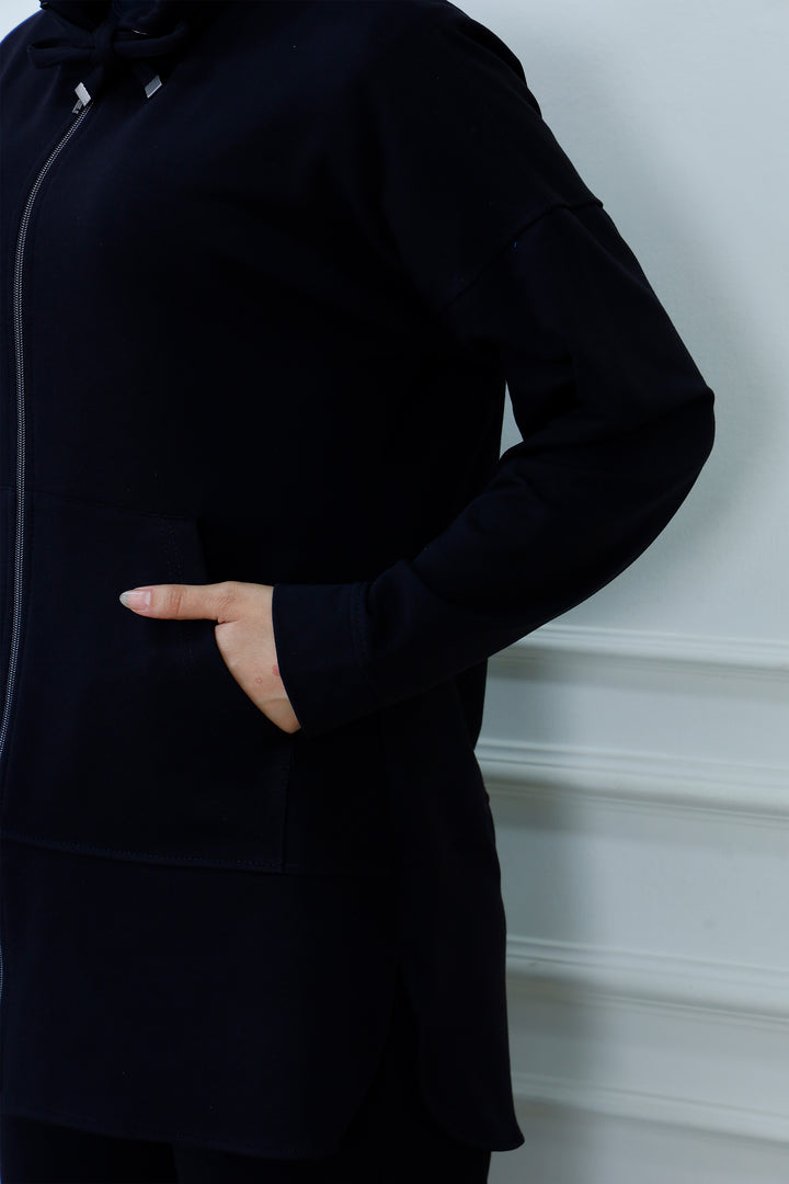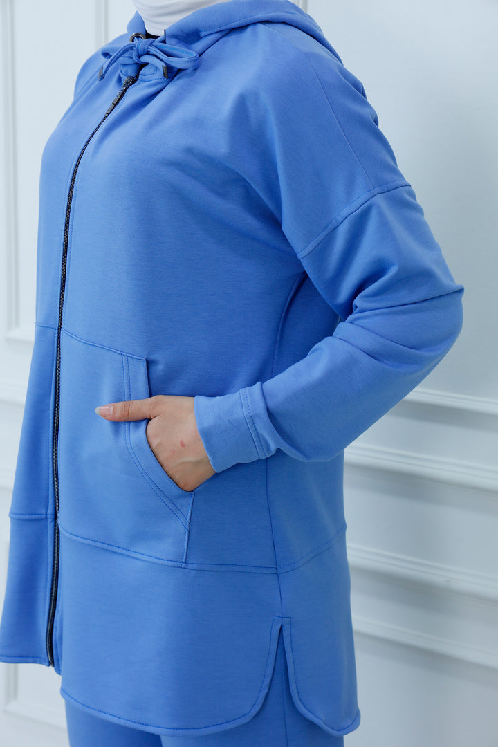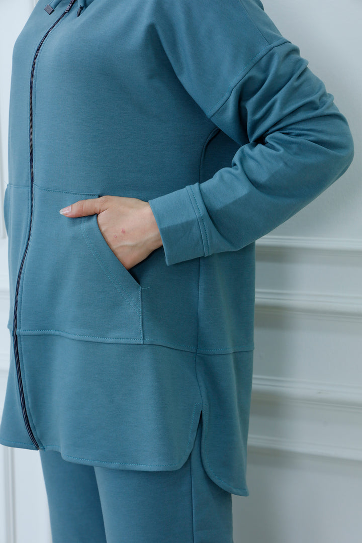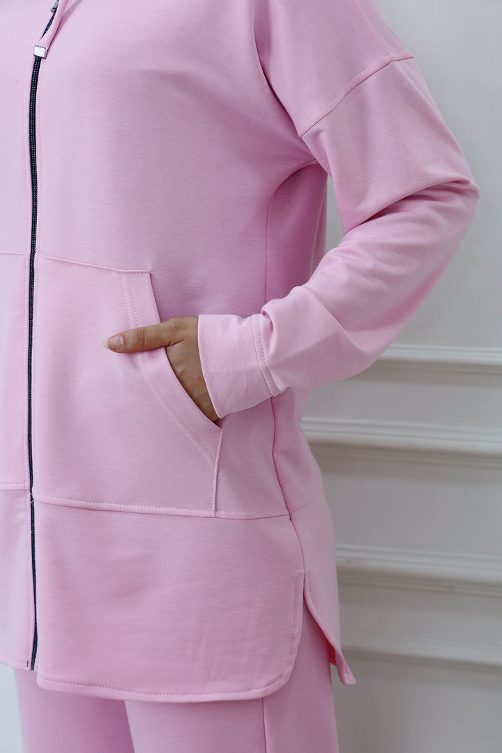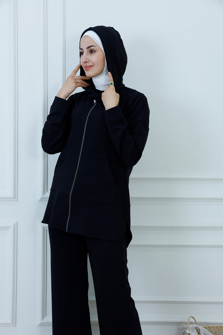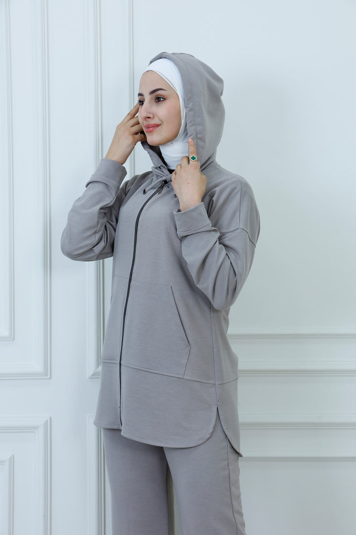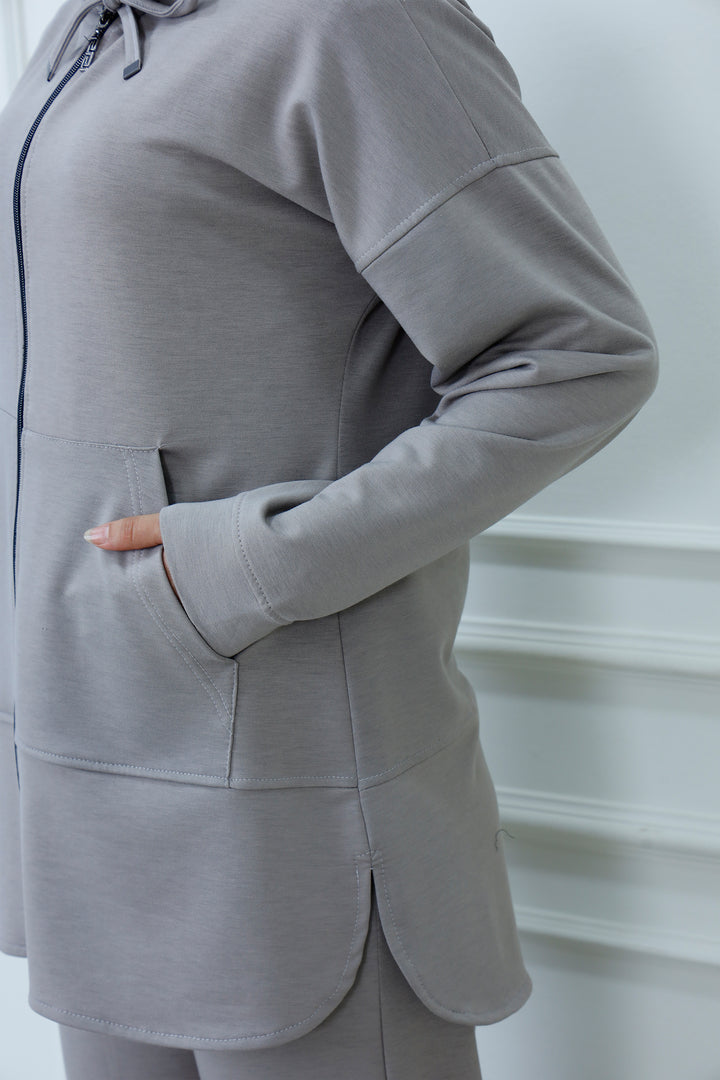 Chic Hooded-Zip-up Ensemble | Longline Zip Hoodie & Pants