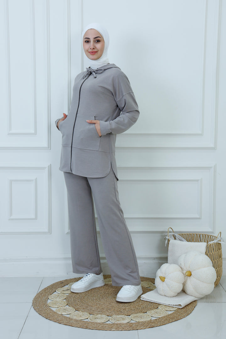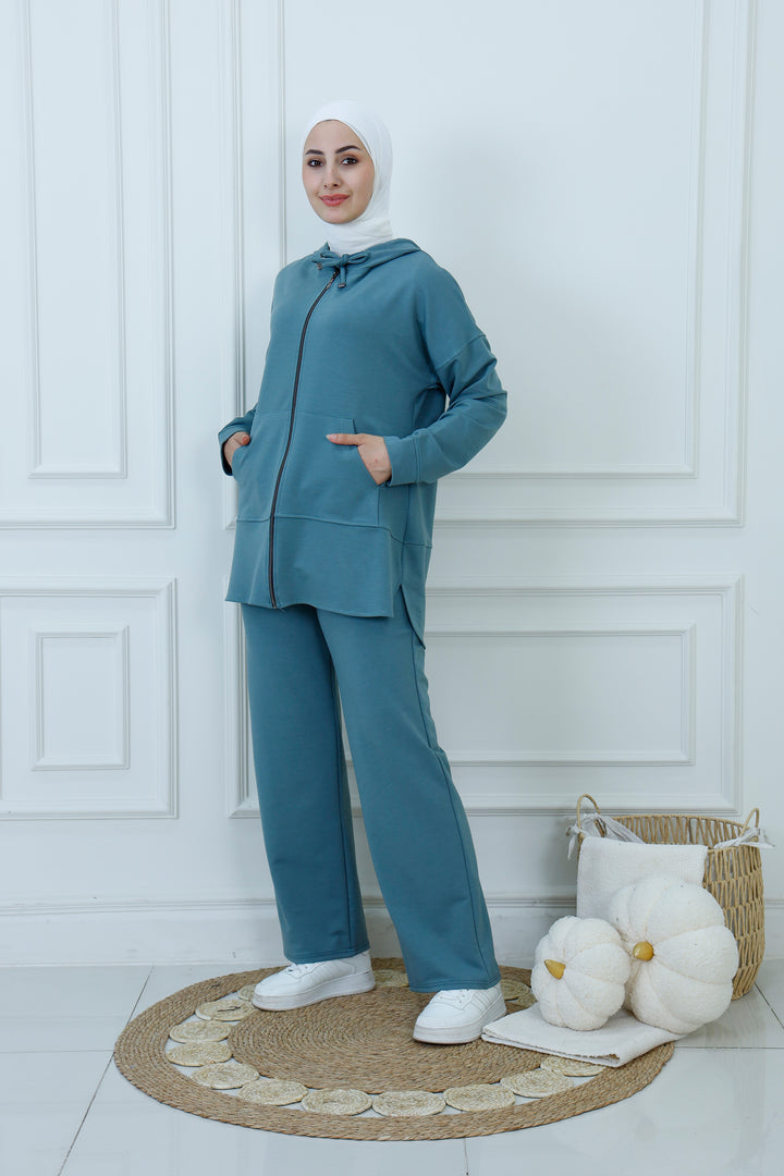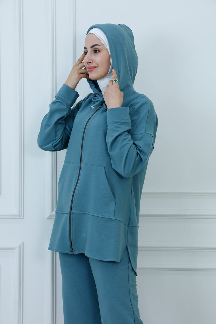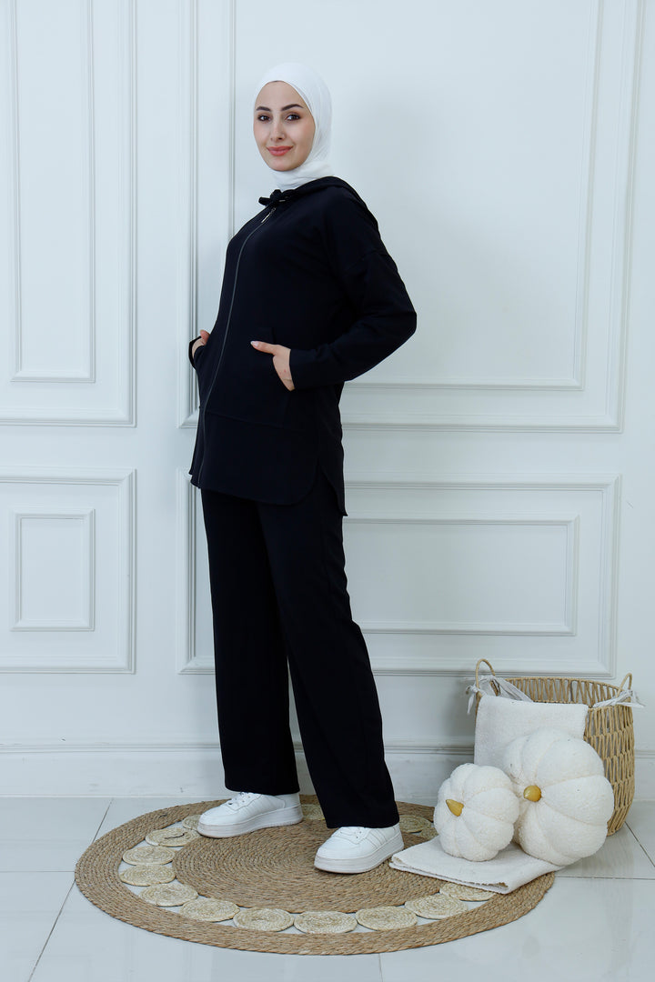 Achieve instant, polished style and comfort with The Effortless Modest Athleisure Set. This cozy, two-piece co-ord is perfect for travel, weekend errands, or simply lounging in style, providing a relaxed yet put-together look.