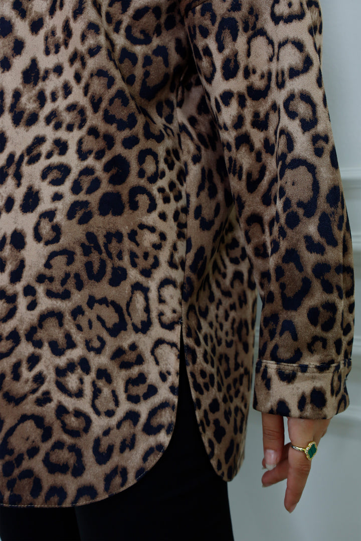 Unleash your inner style icon with our Chic Leopard Print Shirt. This versatile tunic is a chic, modern take on the timeless animal print, perfect for adding a bold yet polished touch to your everyday or evening ensemble. Available in two striking colorways, it's designed for effortless style and coverage