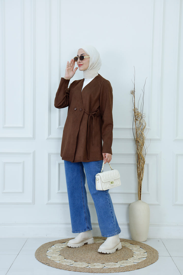 Elevate any outfit instantly with this chic Tailored Short Jacket. The high-quality material has a soft, refined finish and a structured yet comfortable drape, making this piece perfect for transitional weather and smart-casual occasions. The deep, sophisticated color offers incredible versatility for layering.