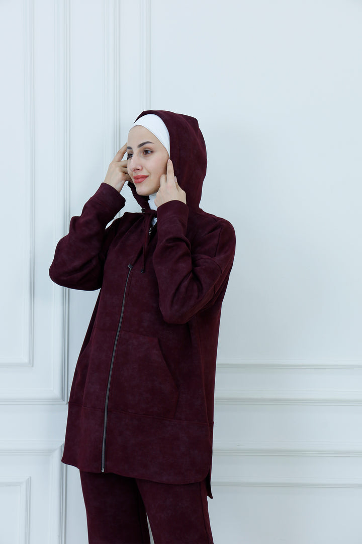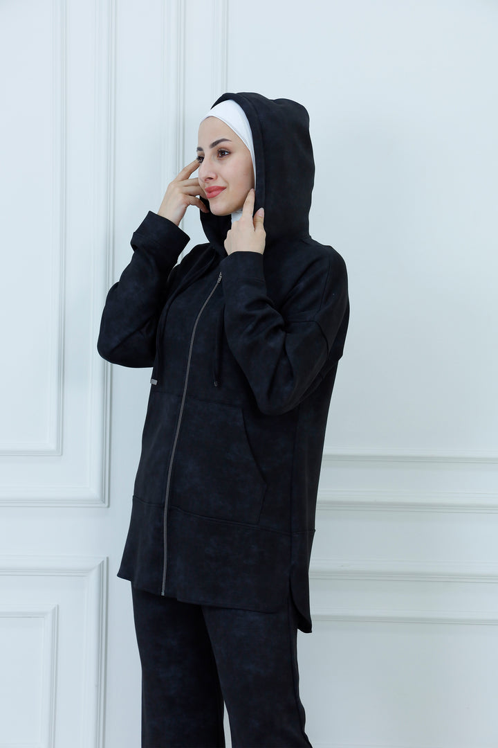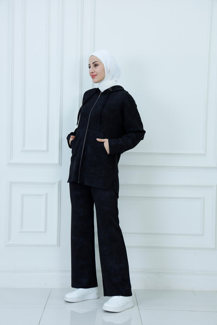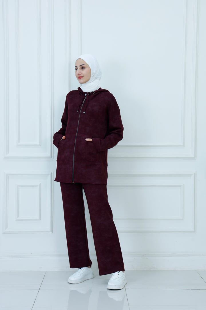 The oversized top offers maximum modest coverage and features a comfortable mock neck design, making it ideal for cooler weather. The matching wide-leg bottoms provide an elegant, flowing silhouette and ensure complete ease of movement. Worn together, this set provides an instantly complete, modern, and modest look.