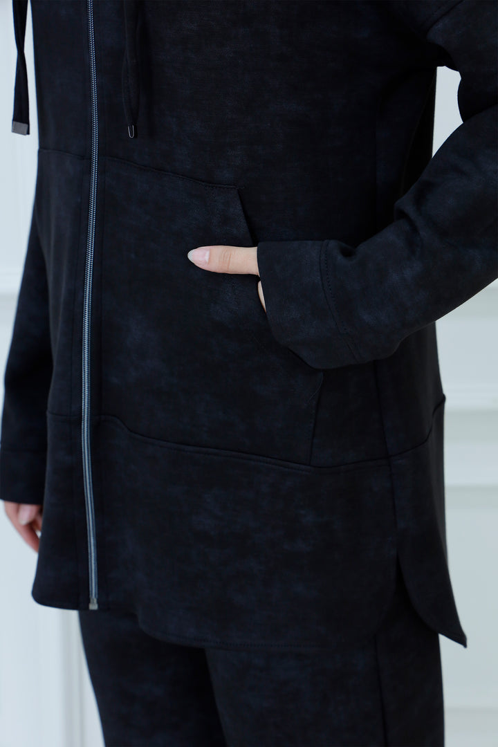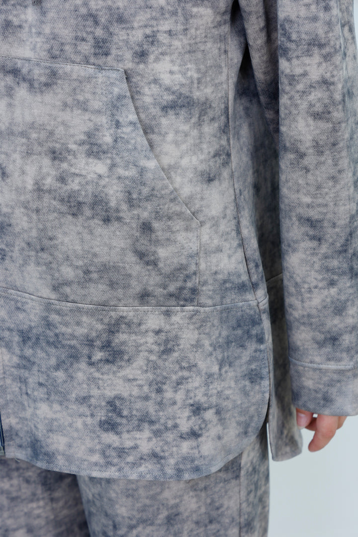Chic Two-Piece Zip-up Ensemble with Distressed Print