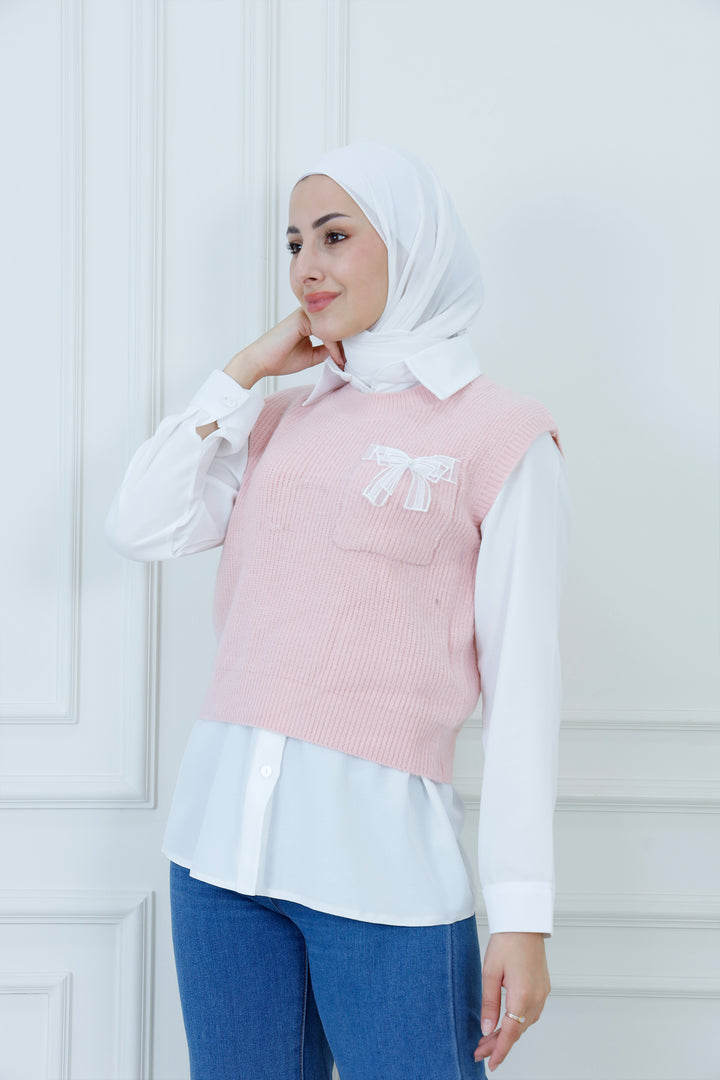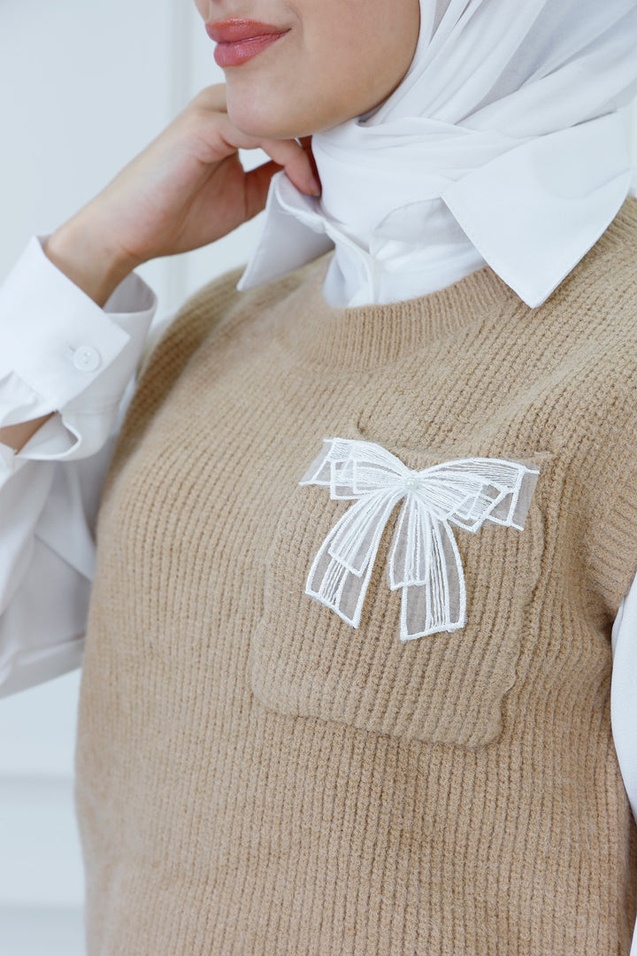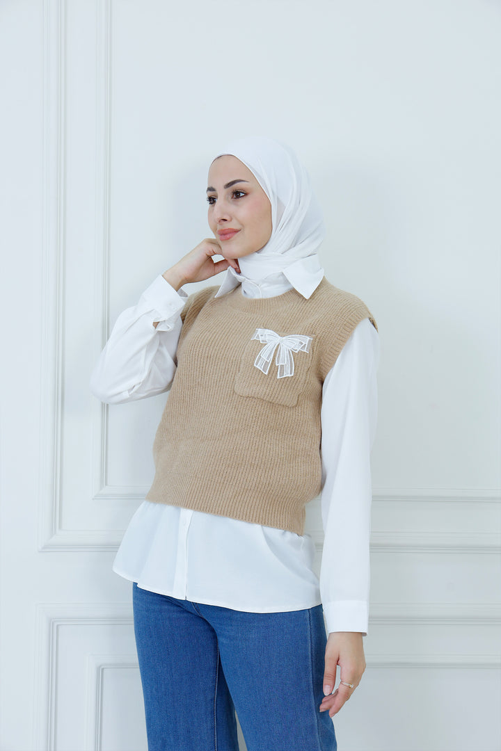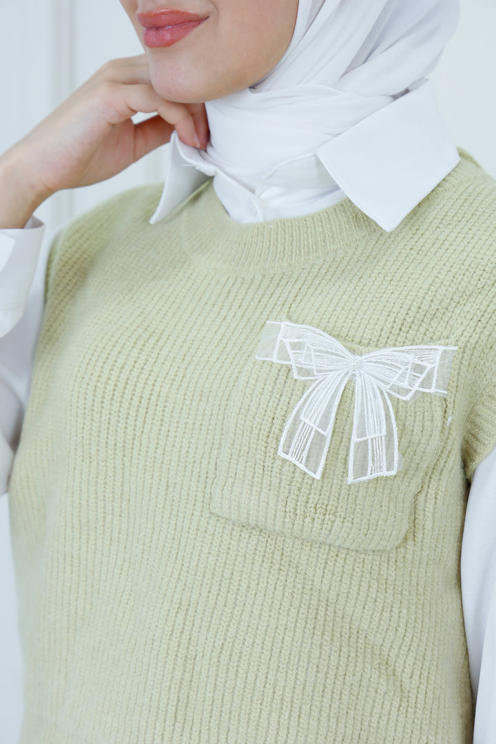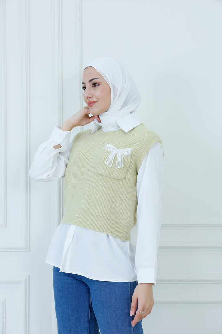 Cropped Knit Sweater Vest with Bow Pocket Detail