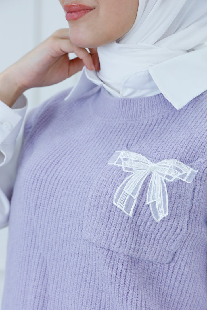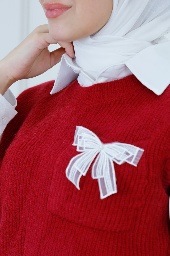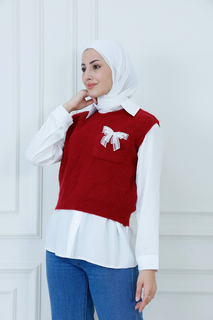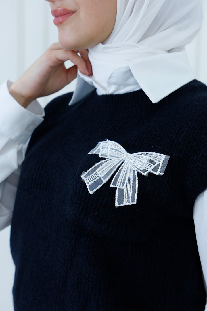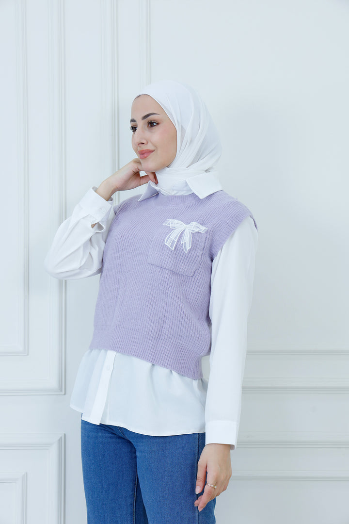 Cropped Knit Sweater Vest with Bow Pocket Detail