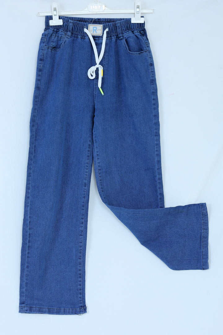 Elastic Waist Denim Jeans with Waist Tie (R)