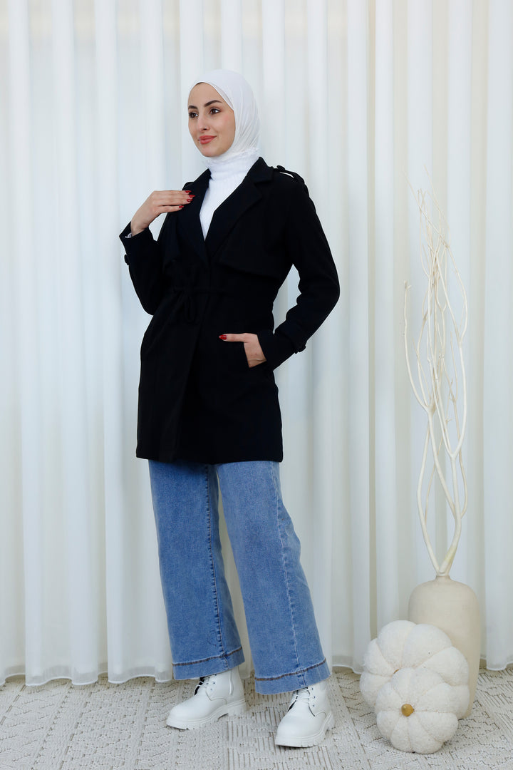 A must-have trench coat for anyone seeking modest elegance with a modern edge.