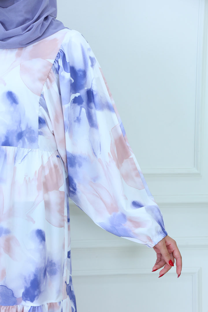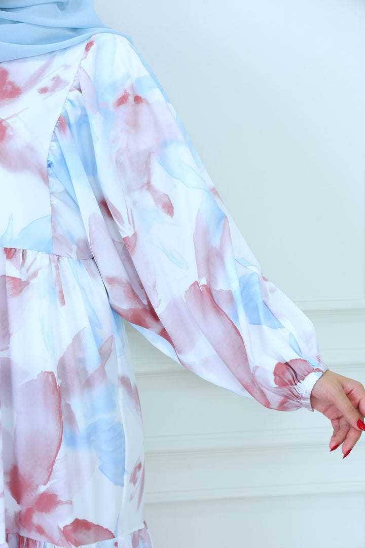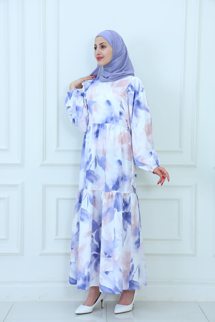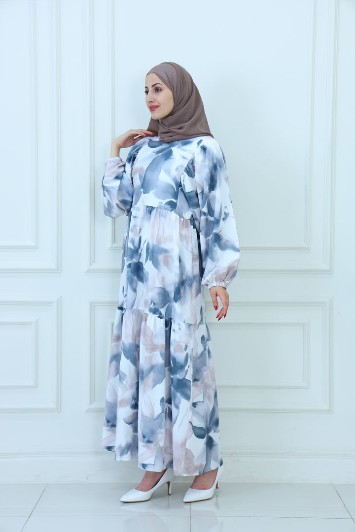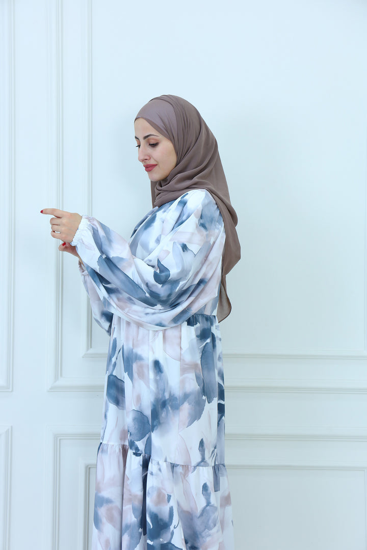 Elevate your style with this elegant floral modest maxi dress, designed with a flowy silhouette and long sleeves for all-day comfort. Featuring a soft abstract floral print, this dress is perfect for casual outings, special occasions, or everyday modest fashion. A versatile piece every woman needs in her wardrobe