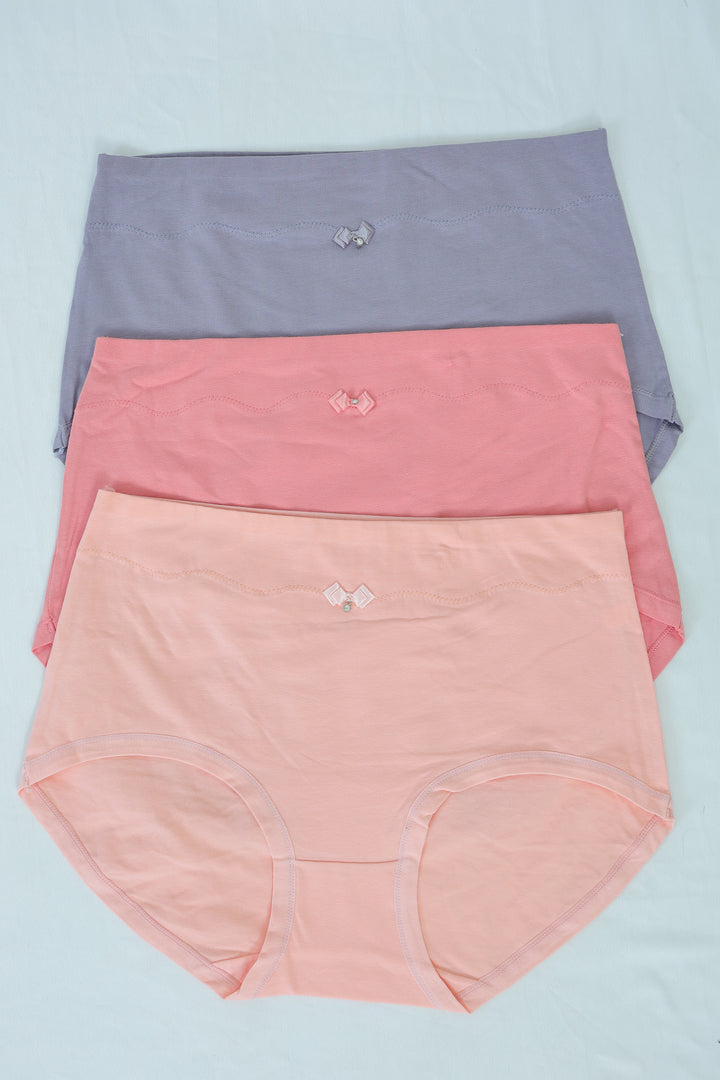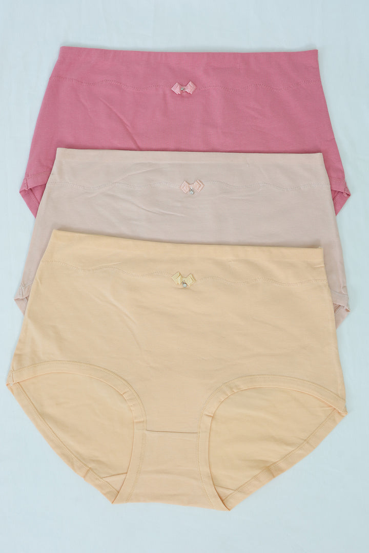Add a touch of charm to your everyday essentials with this elegant panty set. Crafted from soft, breathable cotton, each piece features a smooth finish and full-coverage comfort. The subtle scalloped stitching at the waistband is complemented by a delicate satin bow and a small jewel charm, offering just the right amount of feminine detail without lace. Available in classic neutral tones—black, taupe, and ivory—perfect for daily wear.