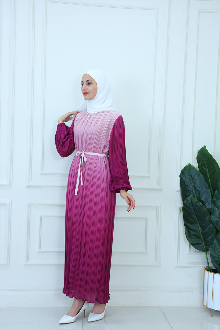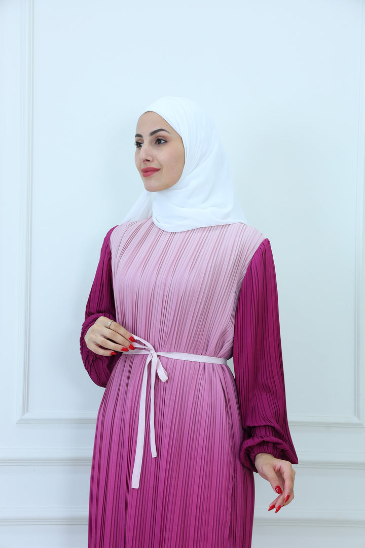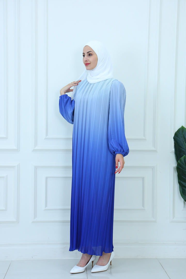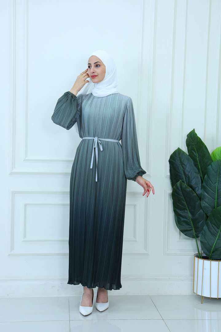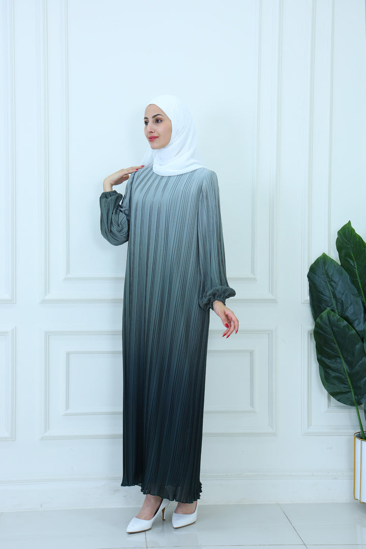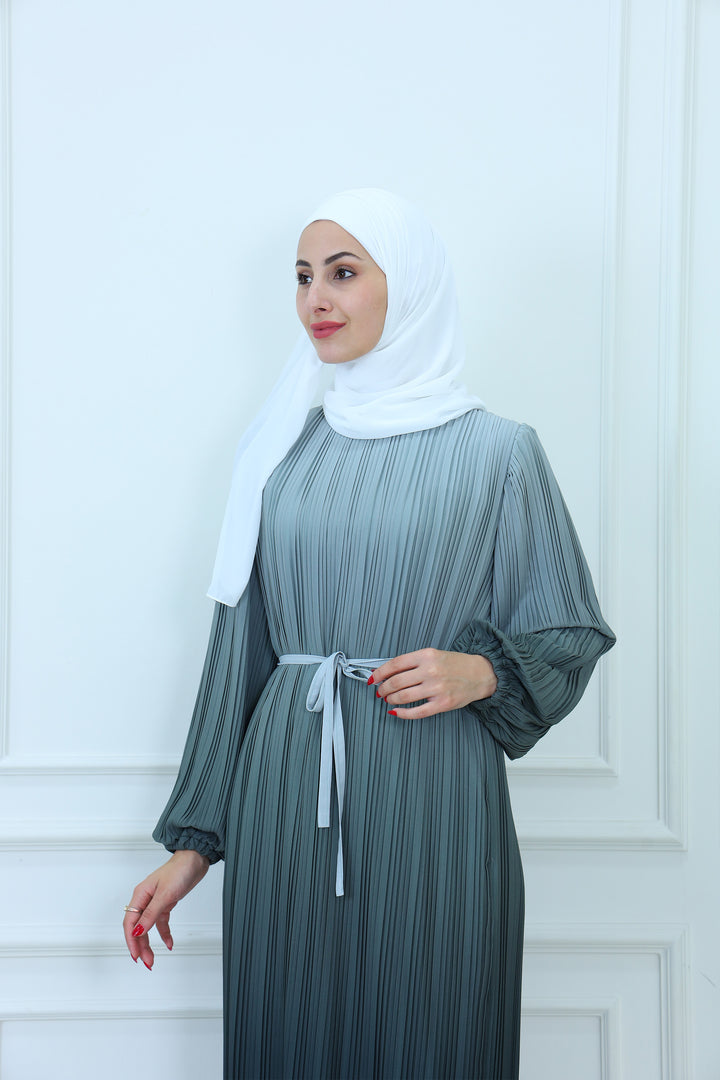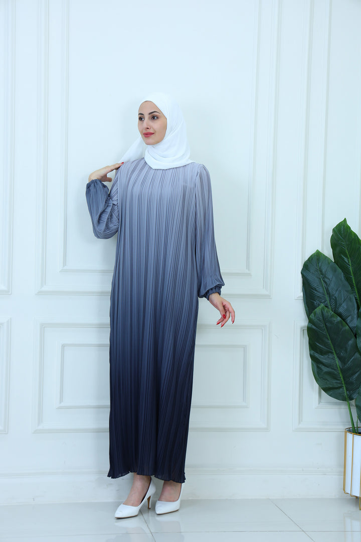 Details: Elegant faded pleated chiffon maxi dress with a flowy silhouette and lightweight fabric. Designed for modest yet modern style, this chic dress offers comfort and sophistication, making it ideal for casual wear, evening outings, or special occasions. A timeless piece for women seeking fashionable and modest chiffon dresses.