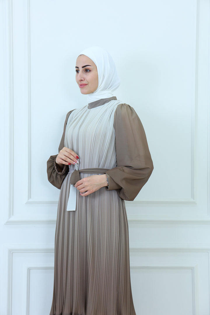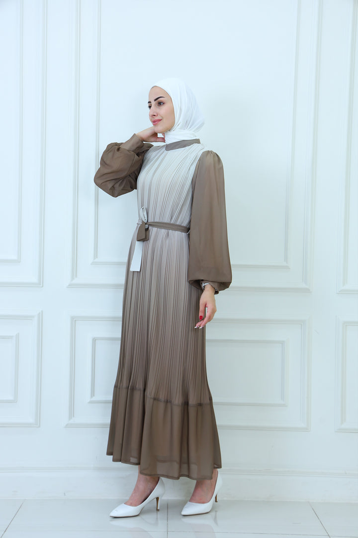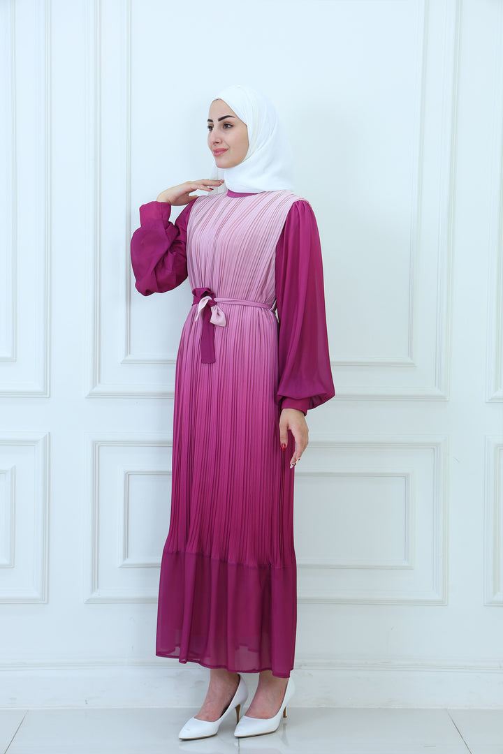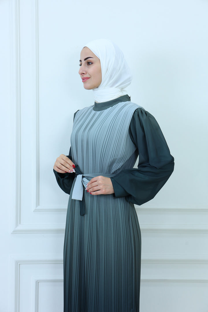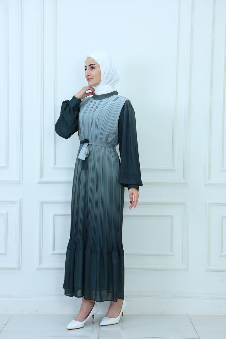 Details: Elegant faded pleated chiffon maxi dress with a flowy silhouette and lightweight fabric. Designed for modest yet modern style, this chic dress offers comfort and sophistication, making it ideal for casual wear, evening outings, or special occasions. A timeless piece for women seeking fashionable and modest chiffon dresses.