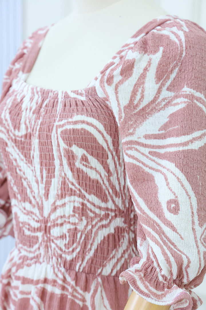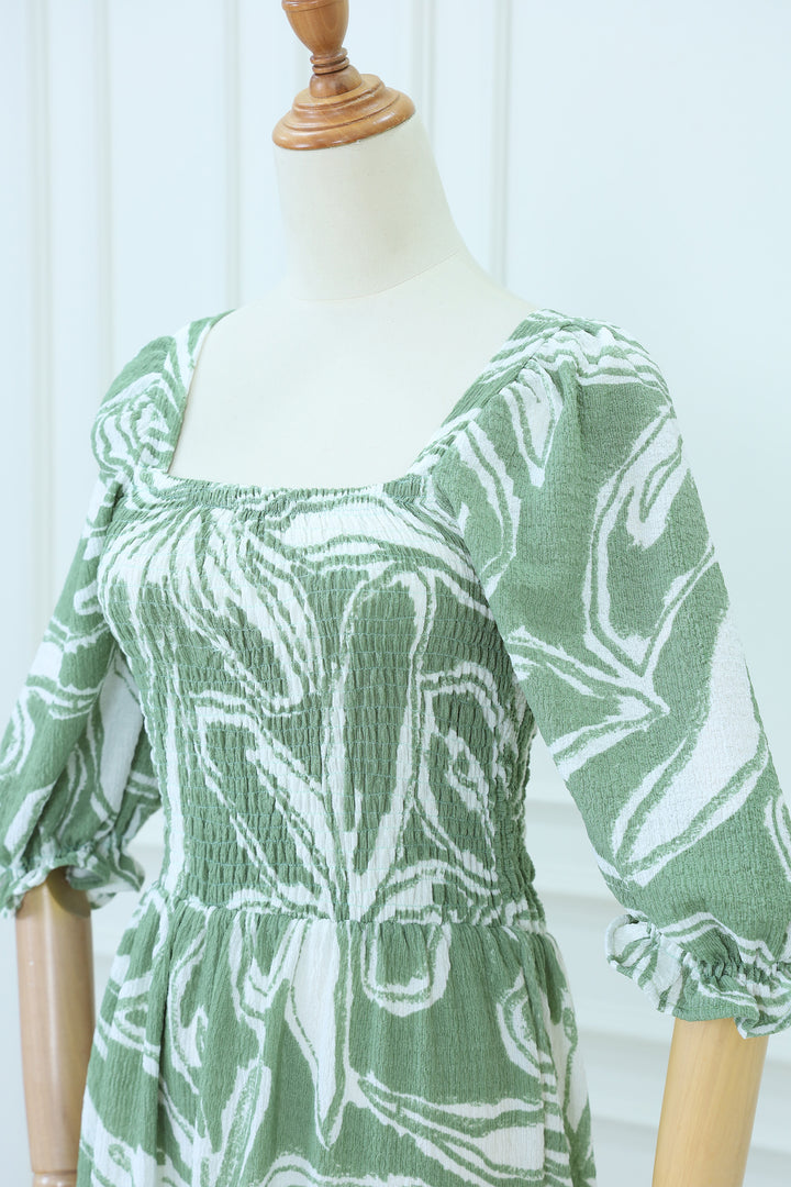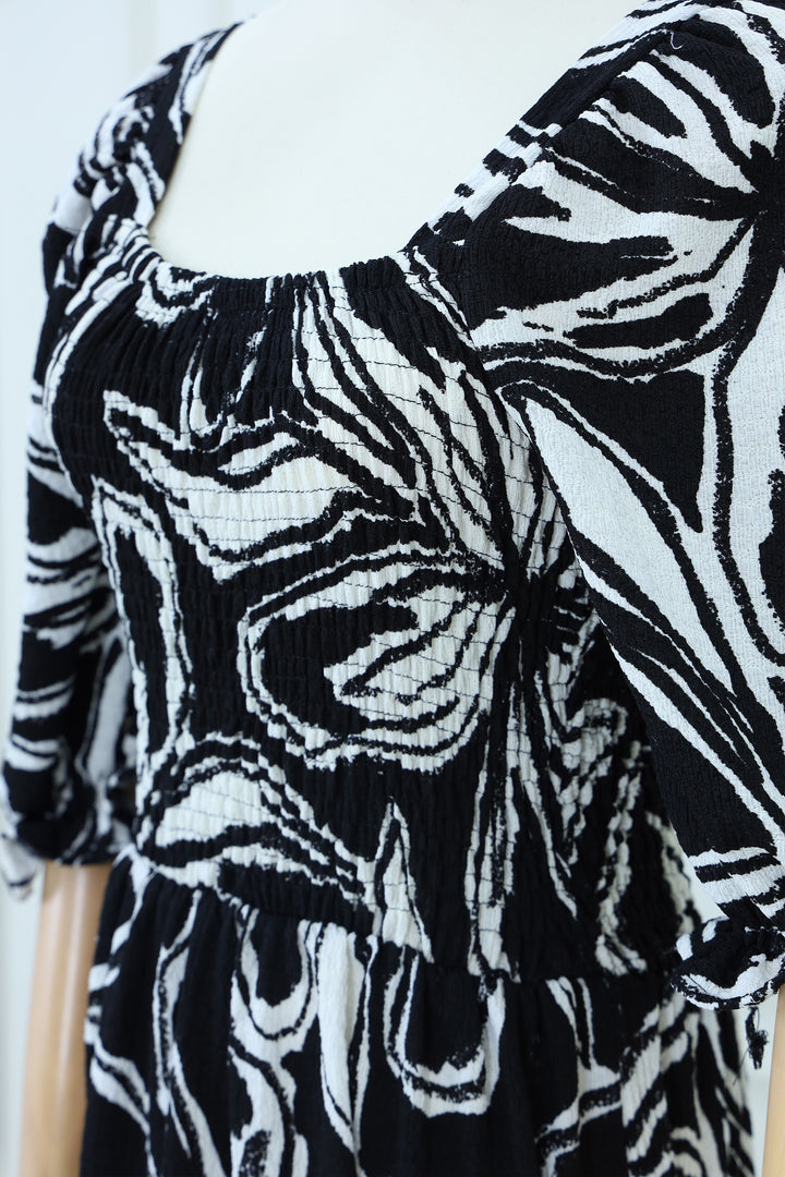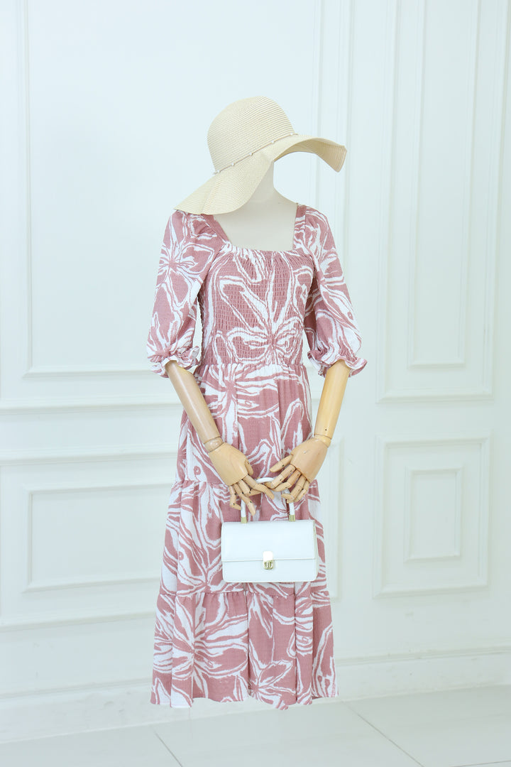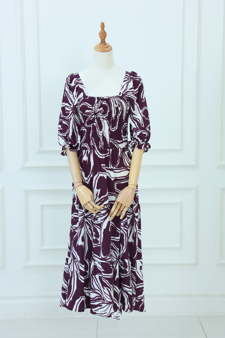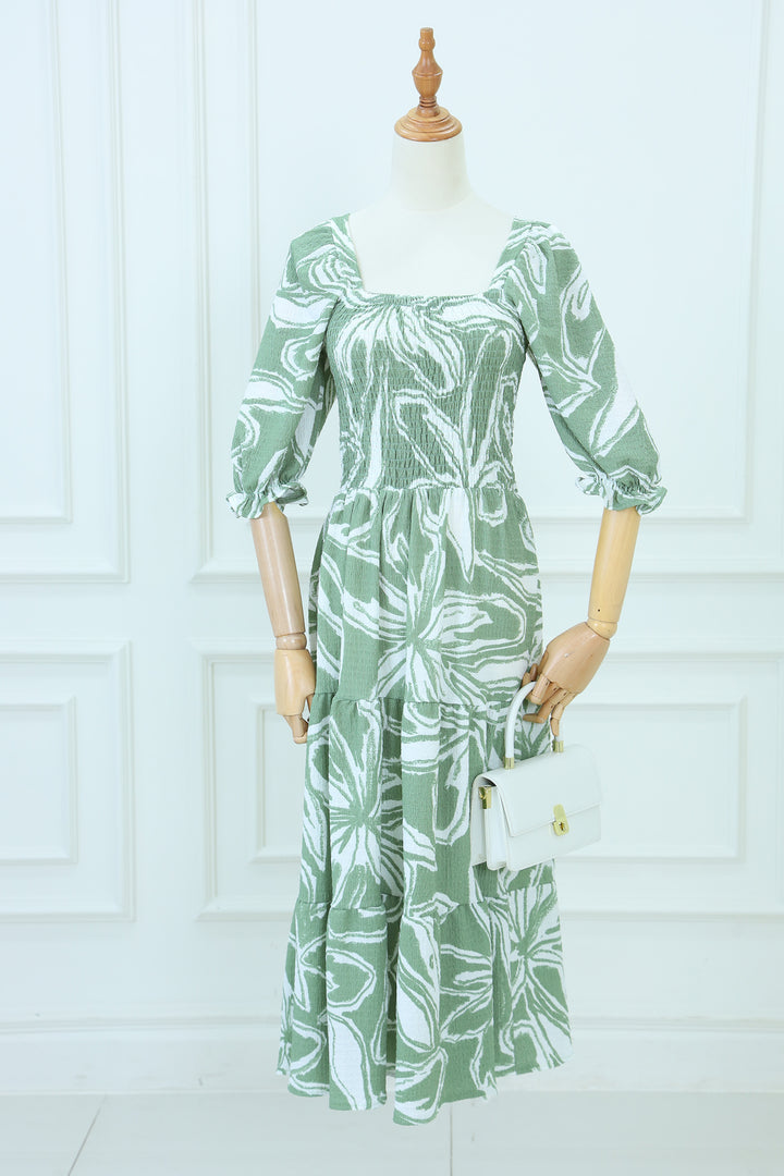 Details: Embrace effortless elegance with this midi dress featuring a bold floral pattern and square neckline. Designed with elastic puff sleeves and a flattering tiered skirt, it offers both comfort and style for casual outings or vacation wear. A versatile must-have for relaxed, chic wardrobes
