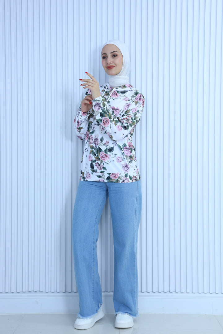Details: Stay cozy and stylish with this floral print hoodie for women, designed with a soft fabric, adjustable drawstring hood, and relaxed fit. Perfect for casual wear, layering with jeans, or adding a feminine touch to your everyday outfit. This women’s floral hoodie blends comfort and fashion, making it ideal for lounging, outings, or streetwear looks
