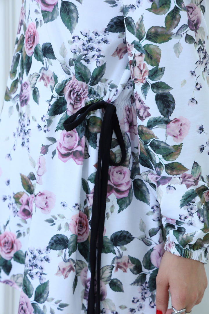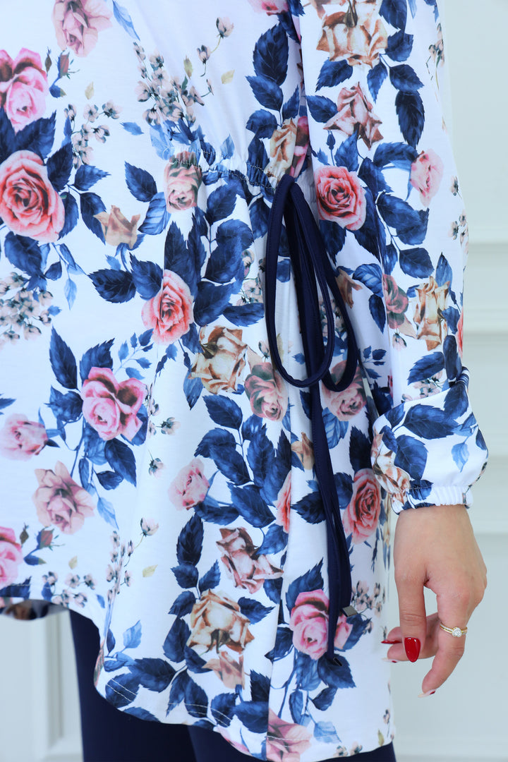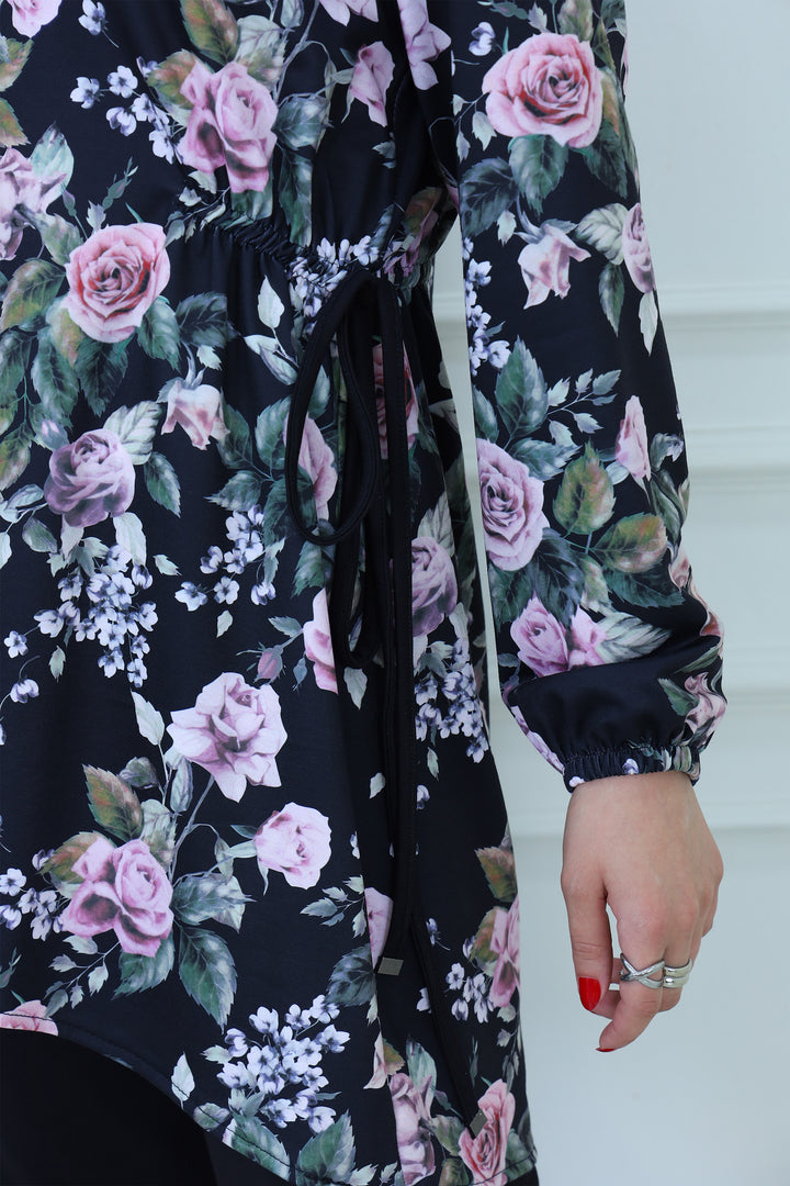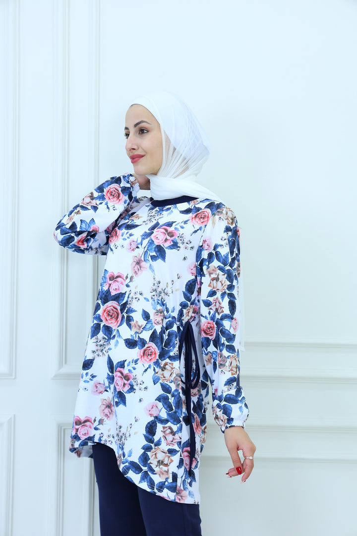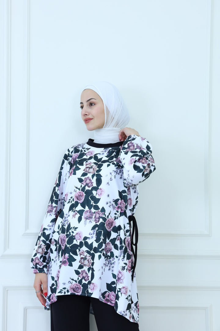 Details: Step out in style with this floral printed modest suit set, featuring a long floral tunic with side tie details and matching wide-leg black pants. Designed for comfort and elegance, this two-piece outfit is perfect for casual wear, office looks, or chic modest fashion styling. A versatile women’s floral suit that blends trend and practicality for everyday or semi-formal occasions