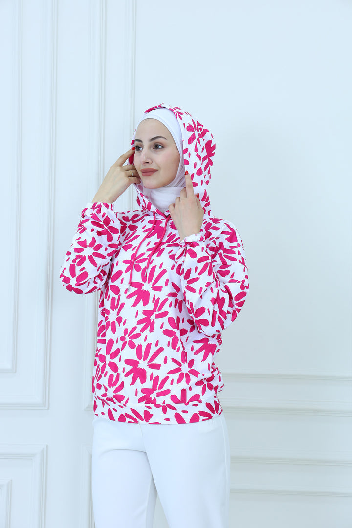 Details: Stay cozy and stylish with this Flory hoodie for women, designed with a soft fabric, adjustable drawstring hood, and relaxed fit. Perfect for casual wear, layering with jeans, or adding a feminine touch to your everyday outfit. This women’s floral hoodie blends comfort and fashion, making it ideal for lounging, outings, or streetwear looks