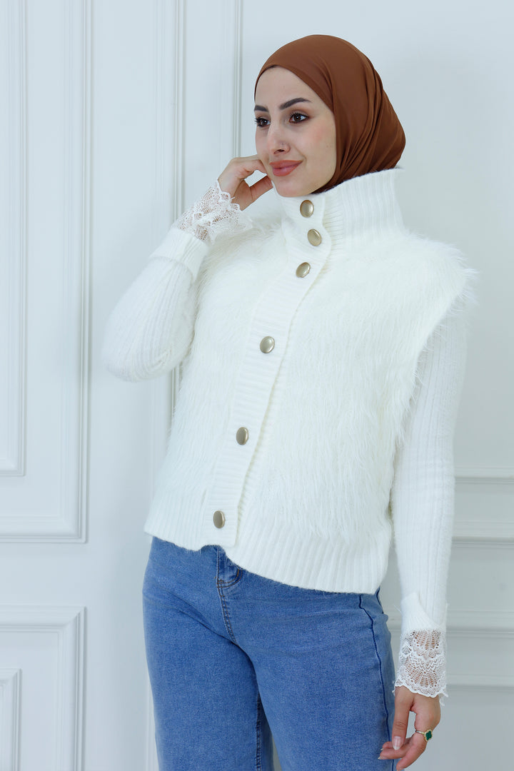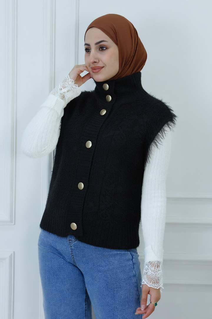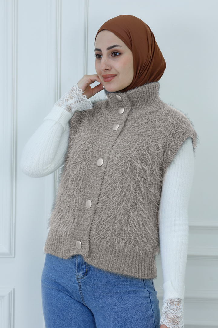 Elevate your cool-weather wardrobe with our statement Fuzzy Knit Button-Up Vest. This chic layering piece offers warmth, texture, and a high-fashion look perfect for modest and contemporary styling.