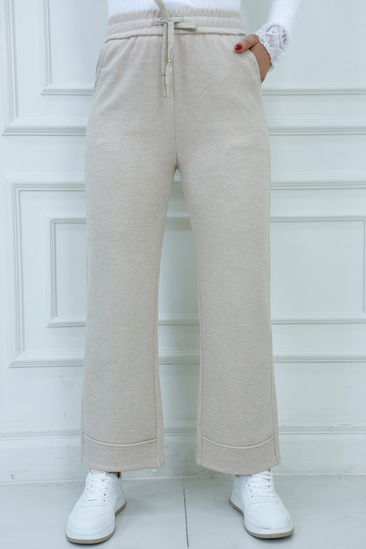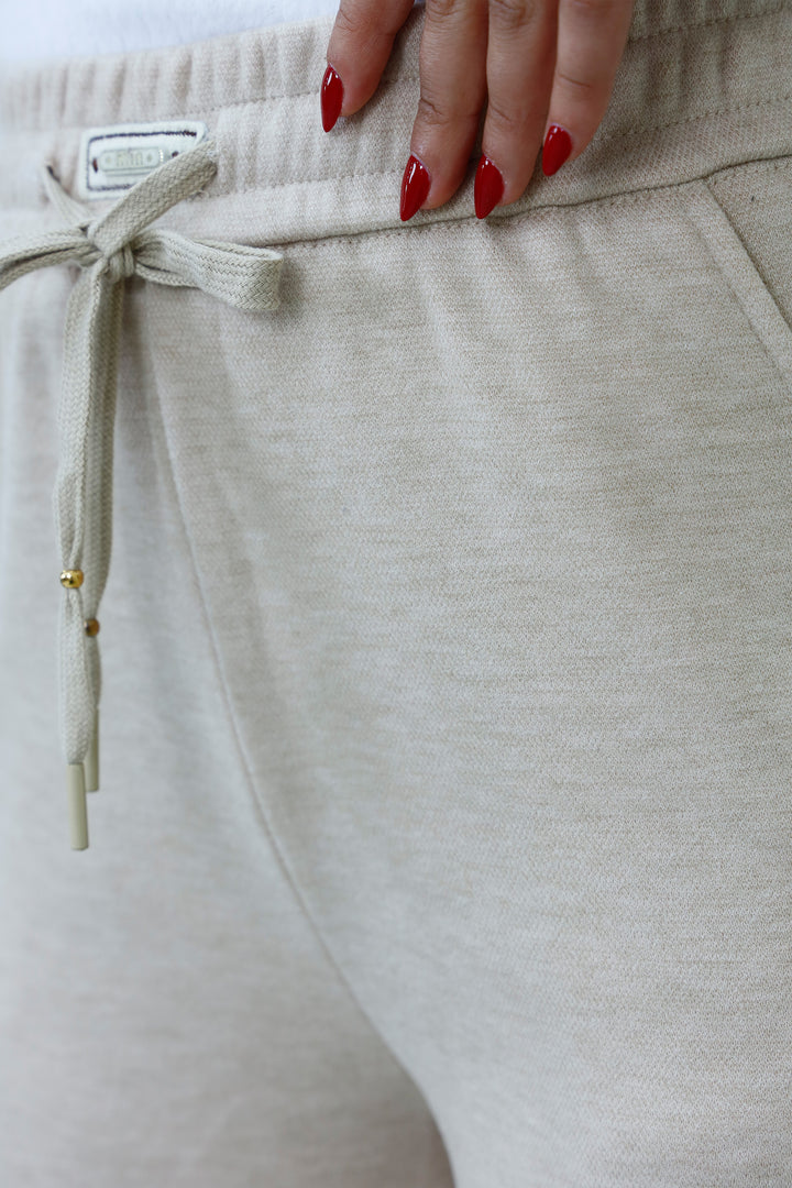 Discover the perfect balance of softness and style with our Heathered Drawstring Sweatpants. Designed in a relaxed straight-leg cut, these pants feature a comfortable elastic waistband with gold-tipped drawstrings and a subtle brand tag for a refined finish. The heathered texture adds depth to the neutral tone, making them ideal for casual wear, lounging, or pairing with modest tops and sneakers.