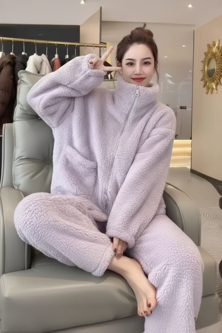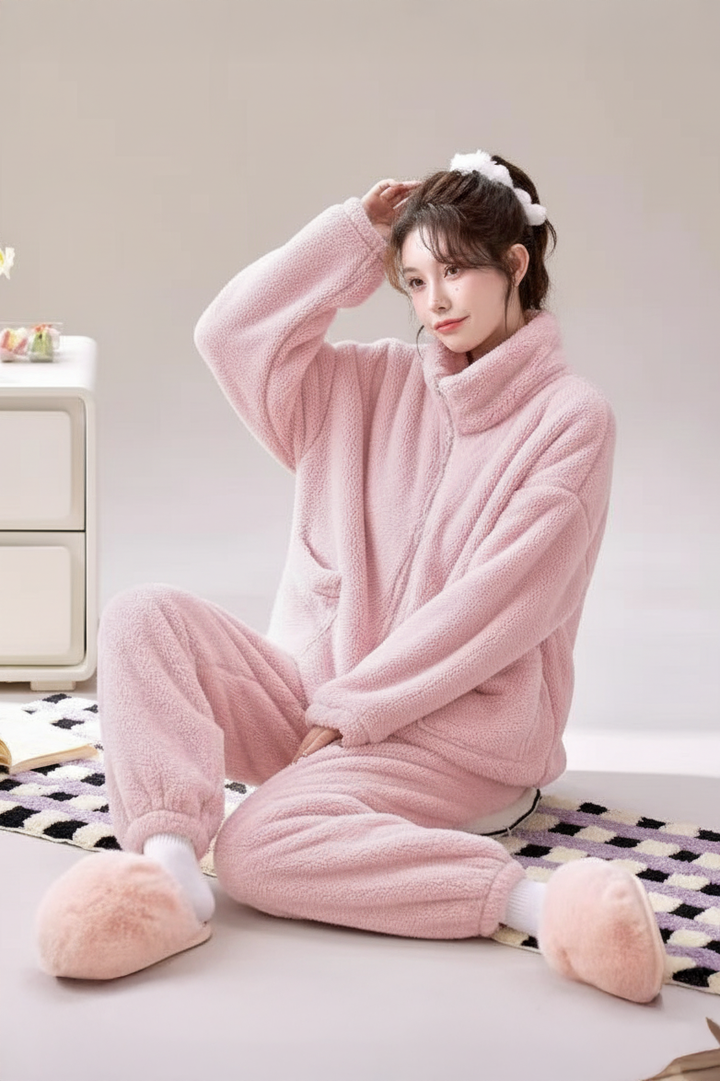 High-Neck Zip-Up Comfort Pajama Set