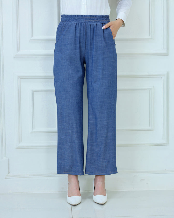 Details: Step into laid-back elegance with these wide-leg jeans, designed with a high elastic waist and side pockets. The relaxed fit and lightweight make them perfect for modest everyday wear with a modern twist