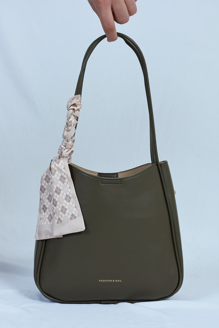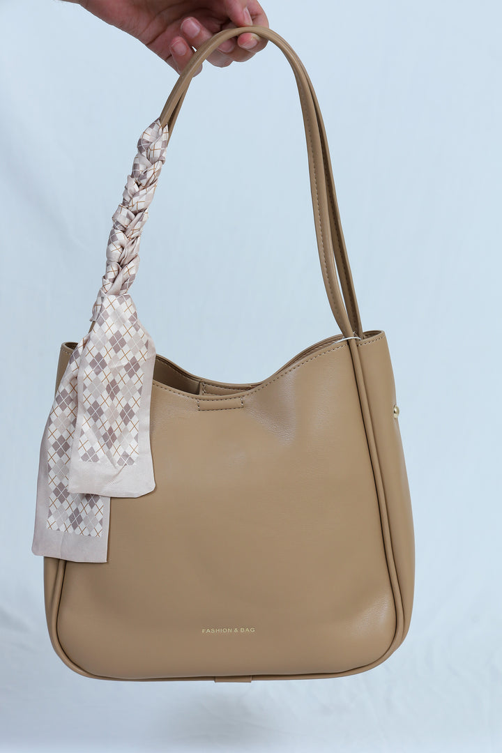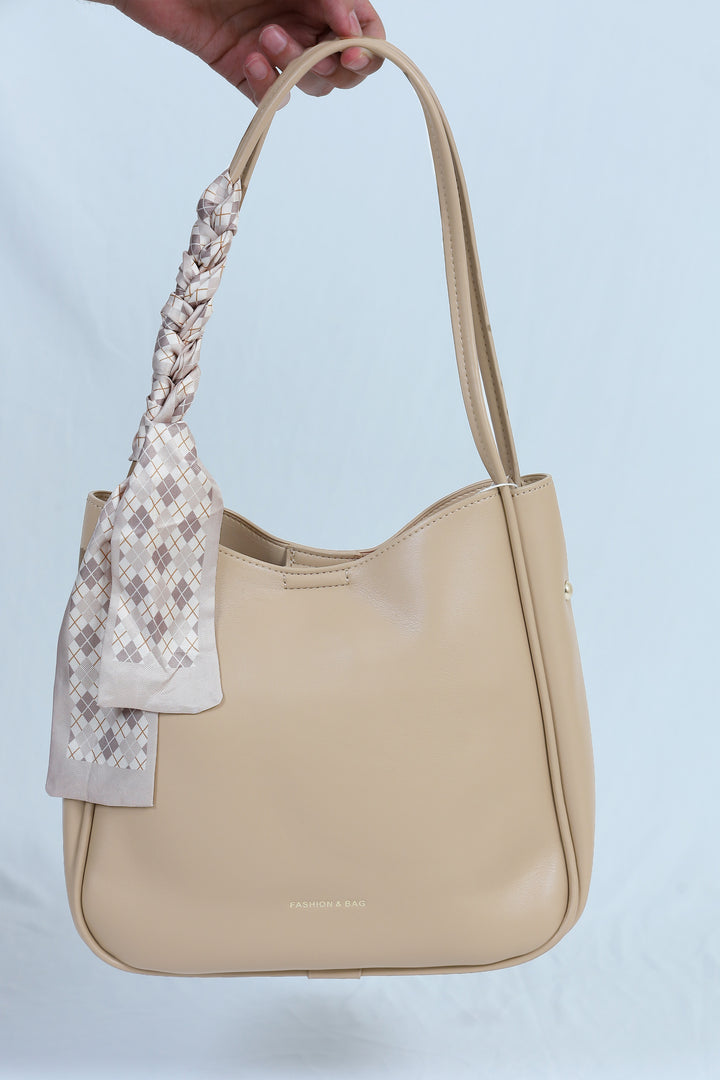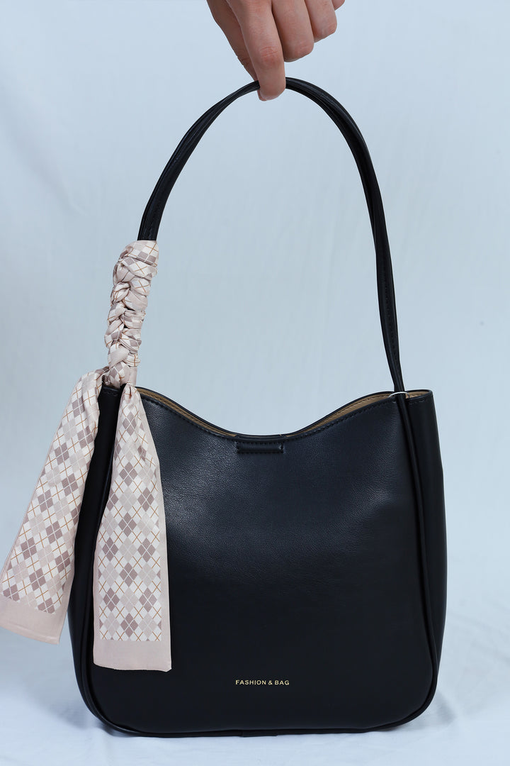 Leather Handbag with Scarf. Designed with a top handle and detachable shoulder strap for versatile styling—perfect for both everyday wear and special outings. Spacious interior fits all your essentials with timeless sophistication