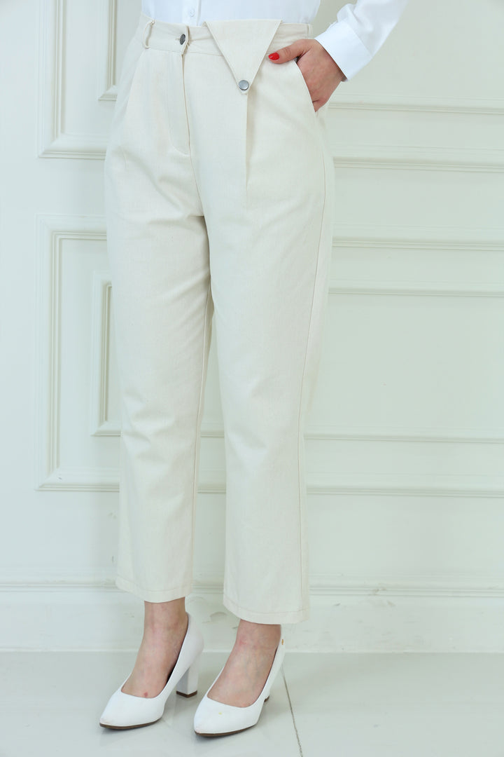 High-Waist Linen Straight Pants