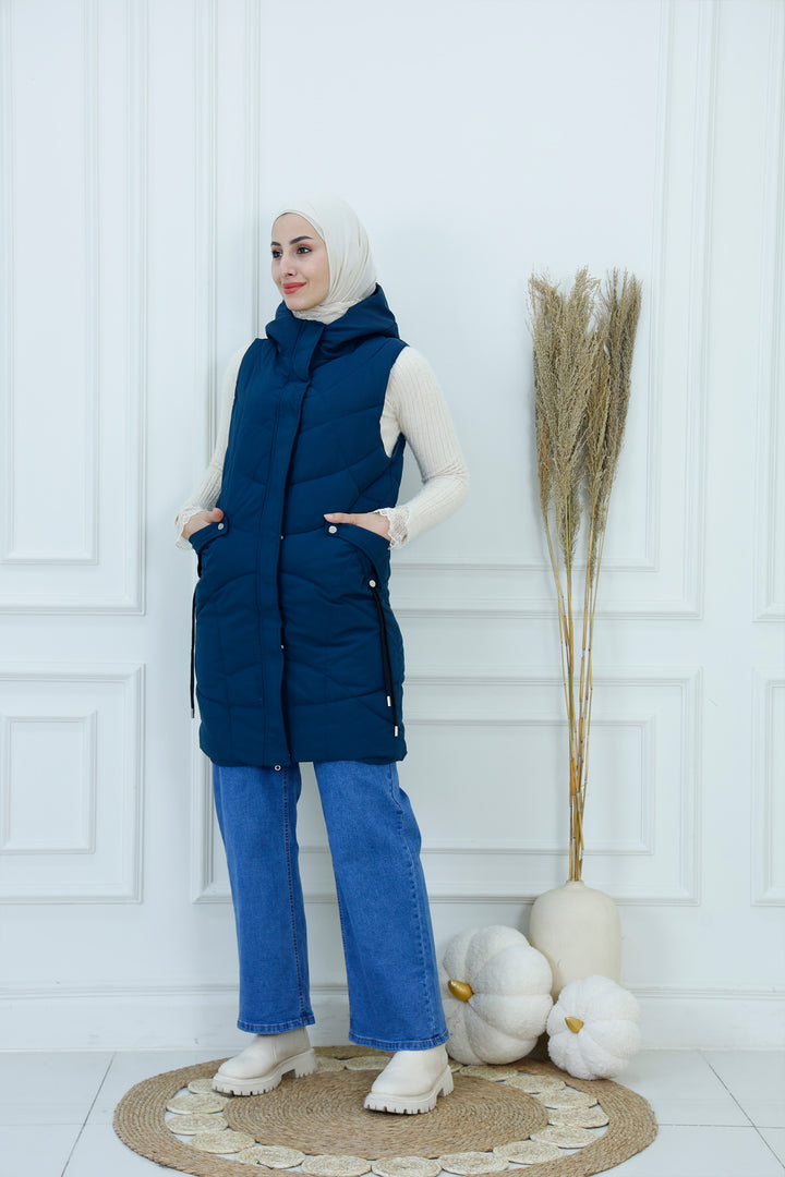 Embrace the changing seasons with our chic and versatile Long Hooded Puffer Vest. Designed for comfort and modern style, this vest is an essential layering piece that adds warmth without bulk, making it perfect for transitional weather or a cool day.